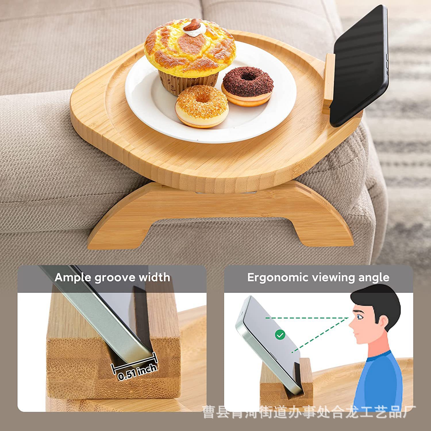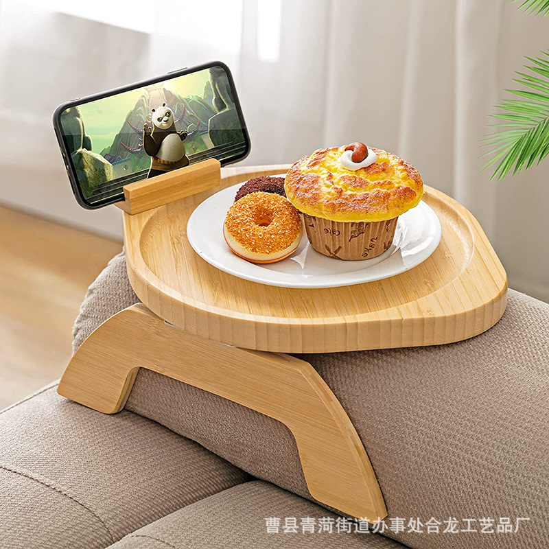 家用木质折叠桌创意简约木质托盘自带旋转手机支架沙发边缘支架