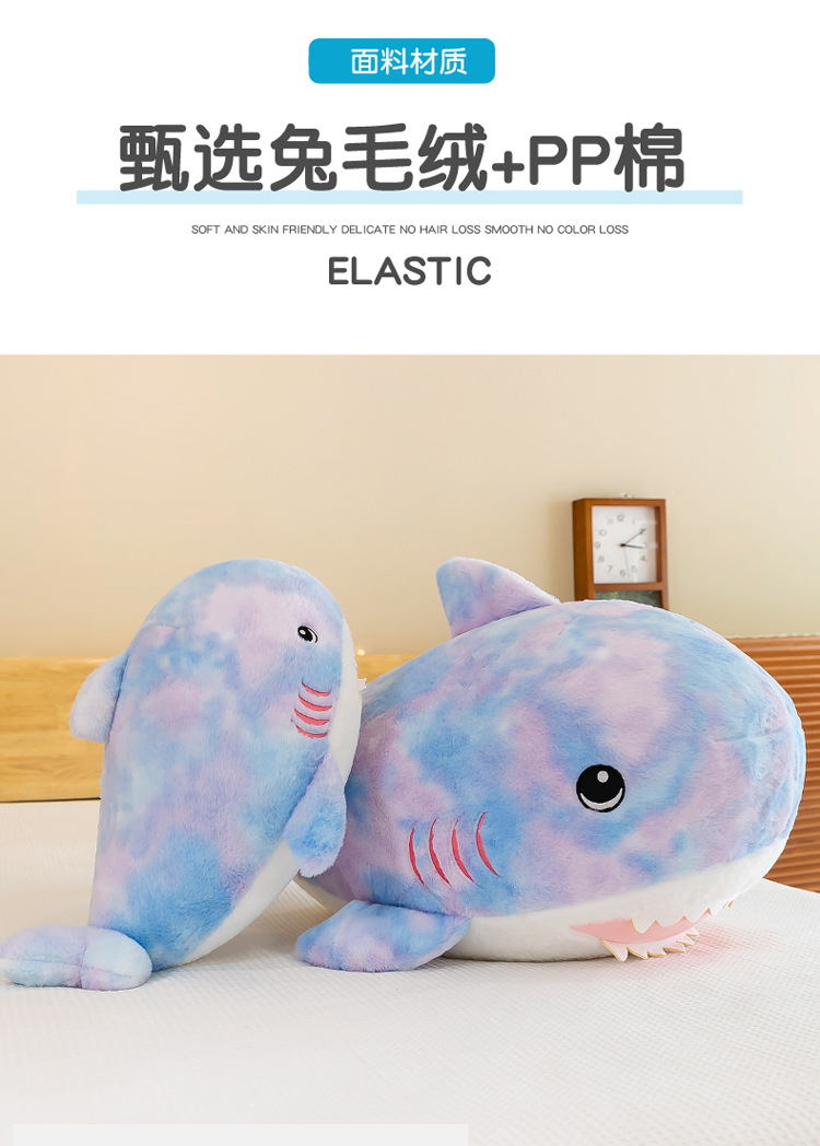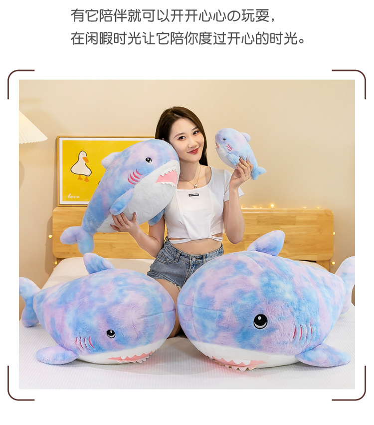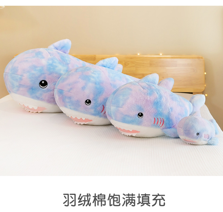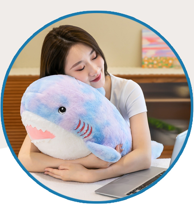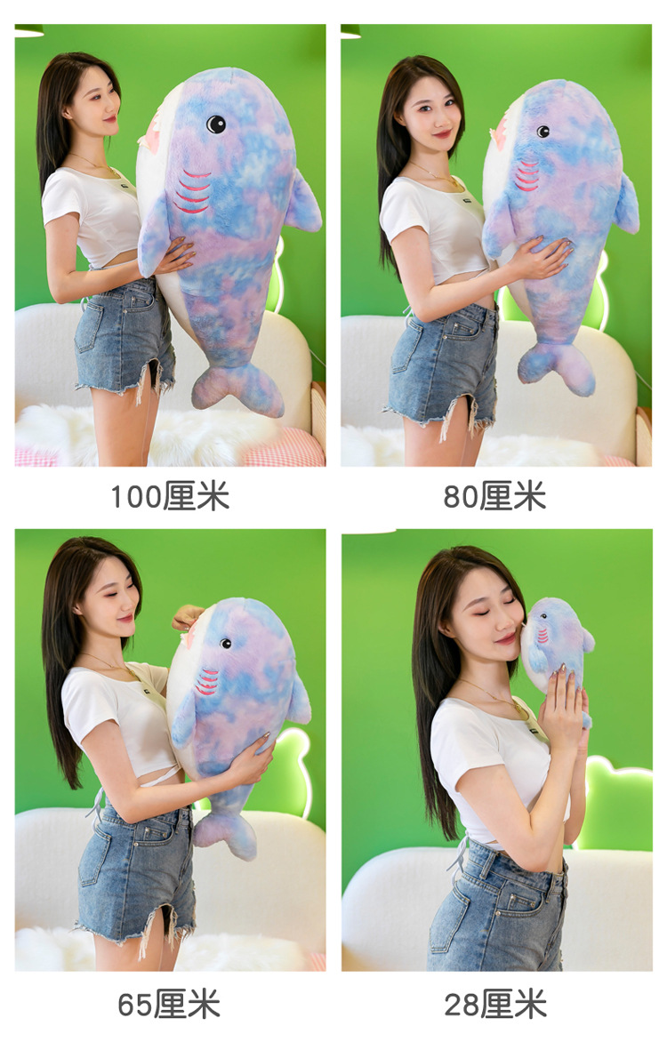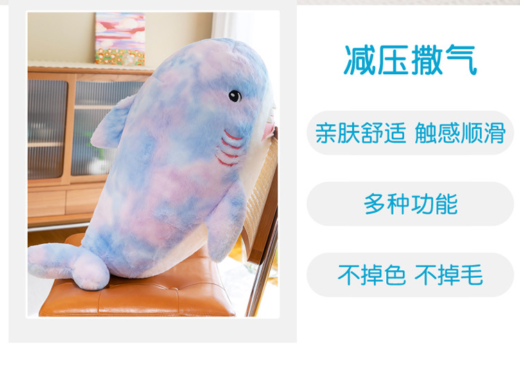 跨境迷彩鲨鱼抱枕毛绒玩具创意彩色鲨鱼公仔玩偶批发抓机娃娃礼品