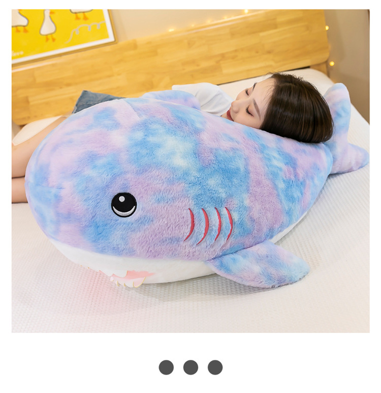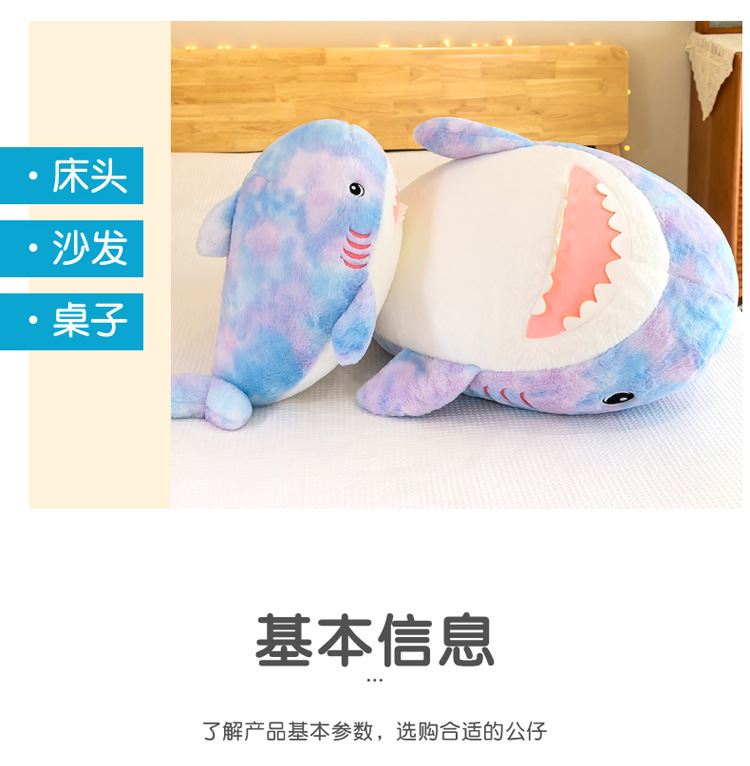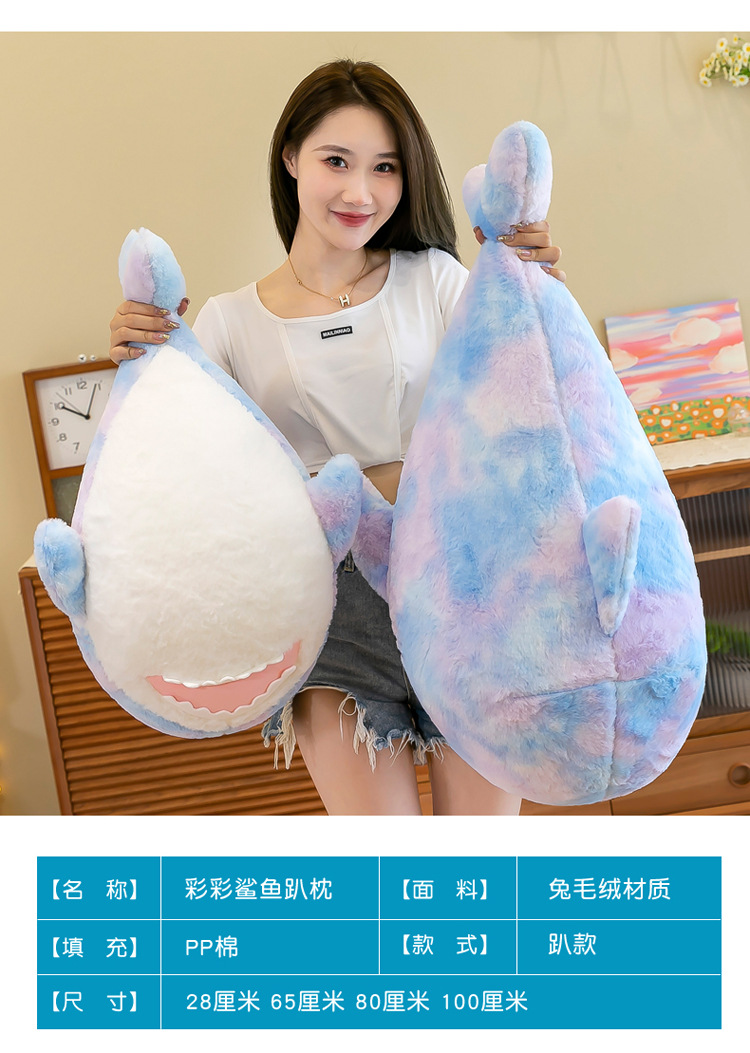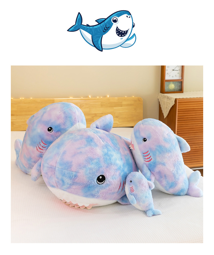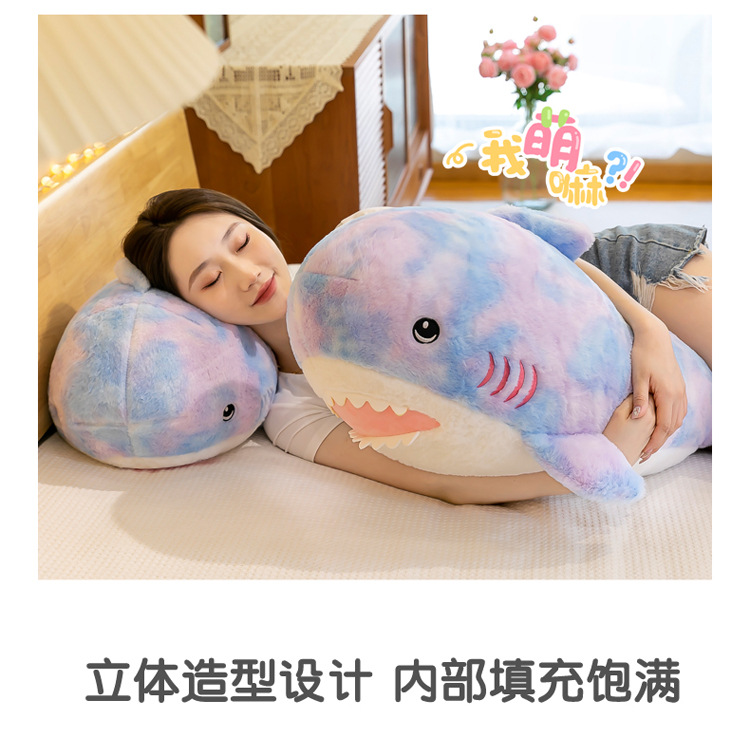 跨境迷彩鲨鱼抱枕毛绒玩具创意彩色鲨鱼公仔玩偶批发抓机娃娃礼品