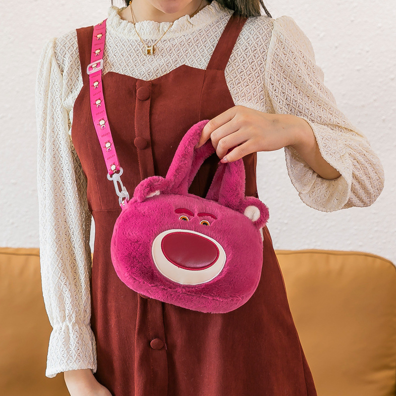 新款卡通玩具包女孩手提包单肩斜跨包草莓熊毛绒包包批发娃娃机