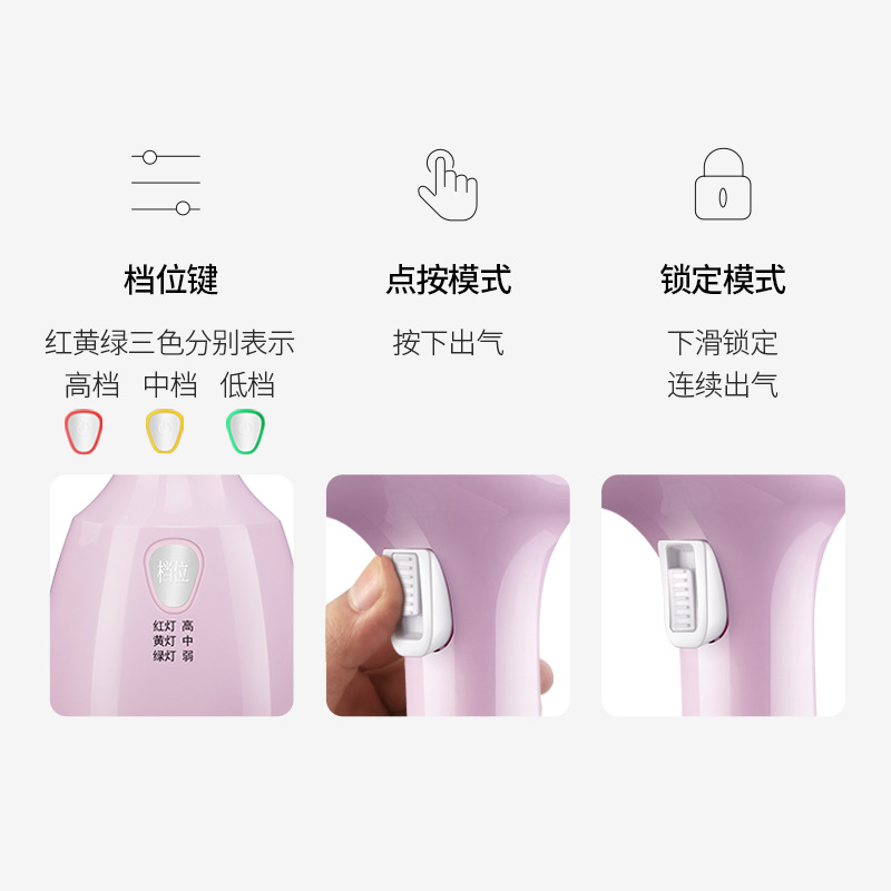 功率1500w,水箱330ml,线长1.6米,三个档位,LED档位提醒,每分钟喷水大约25±3克