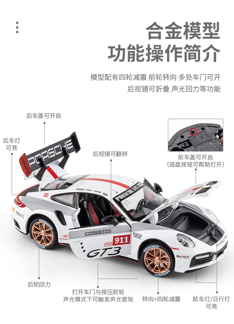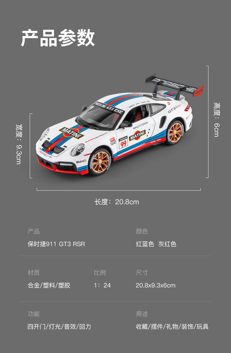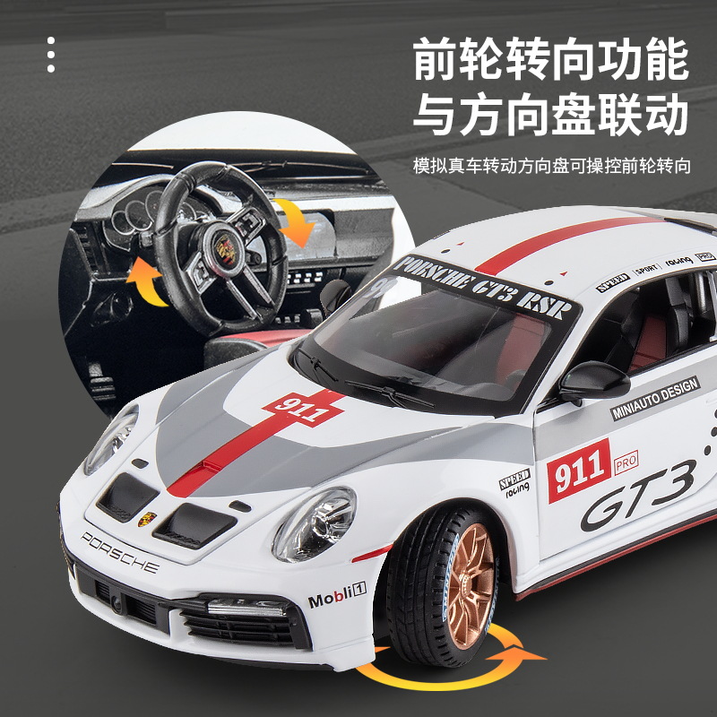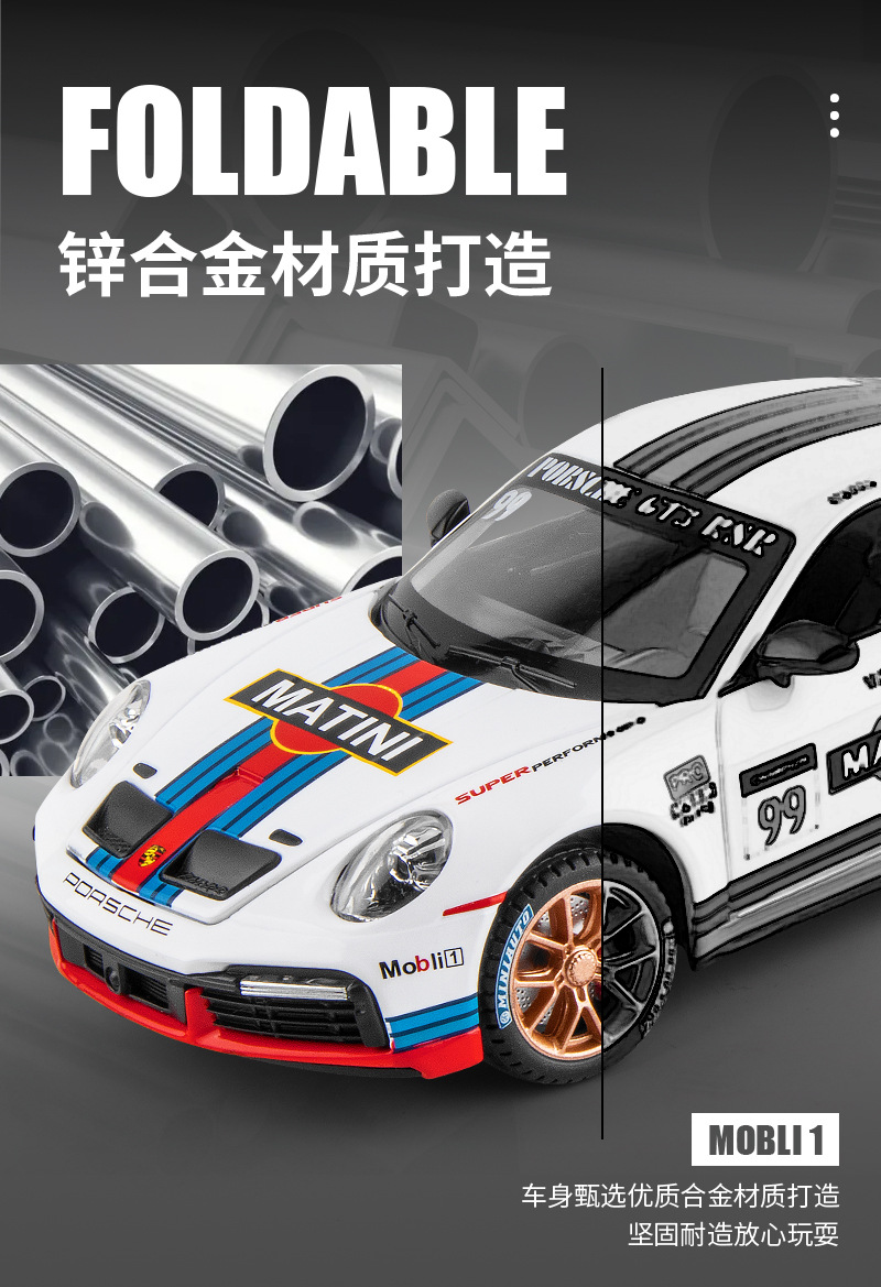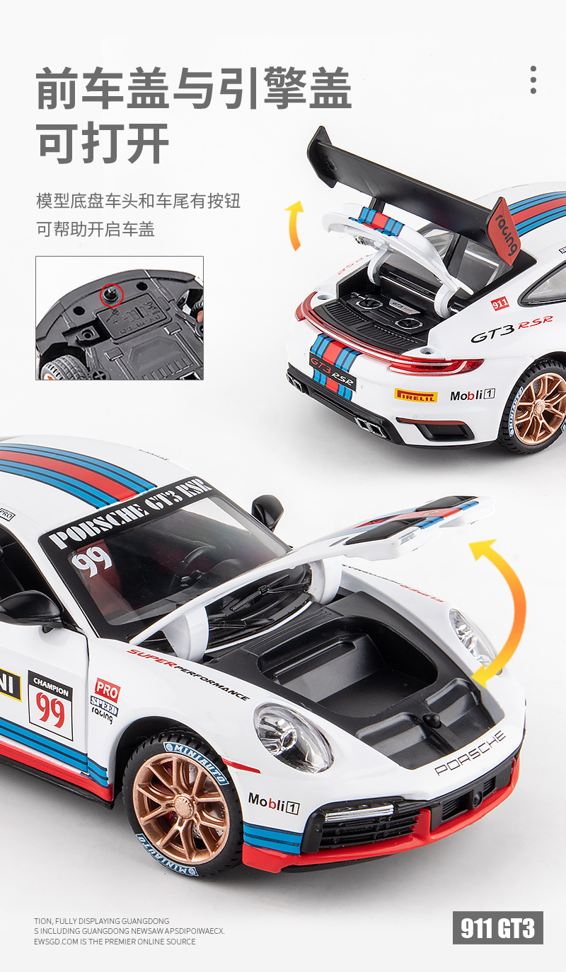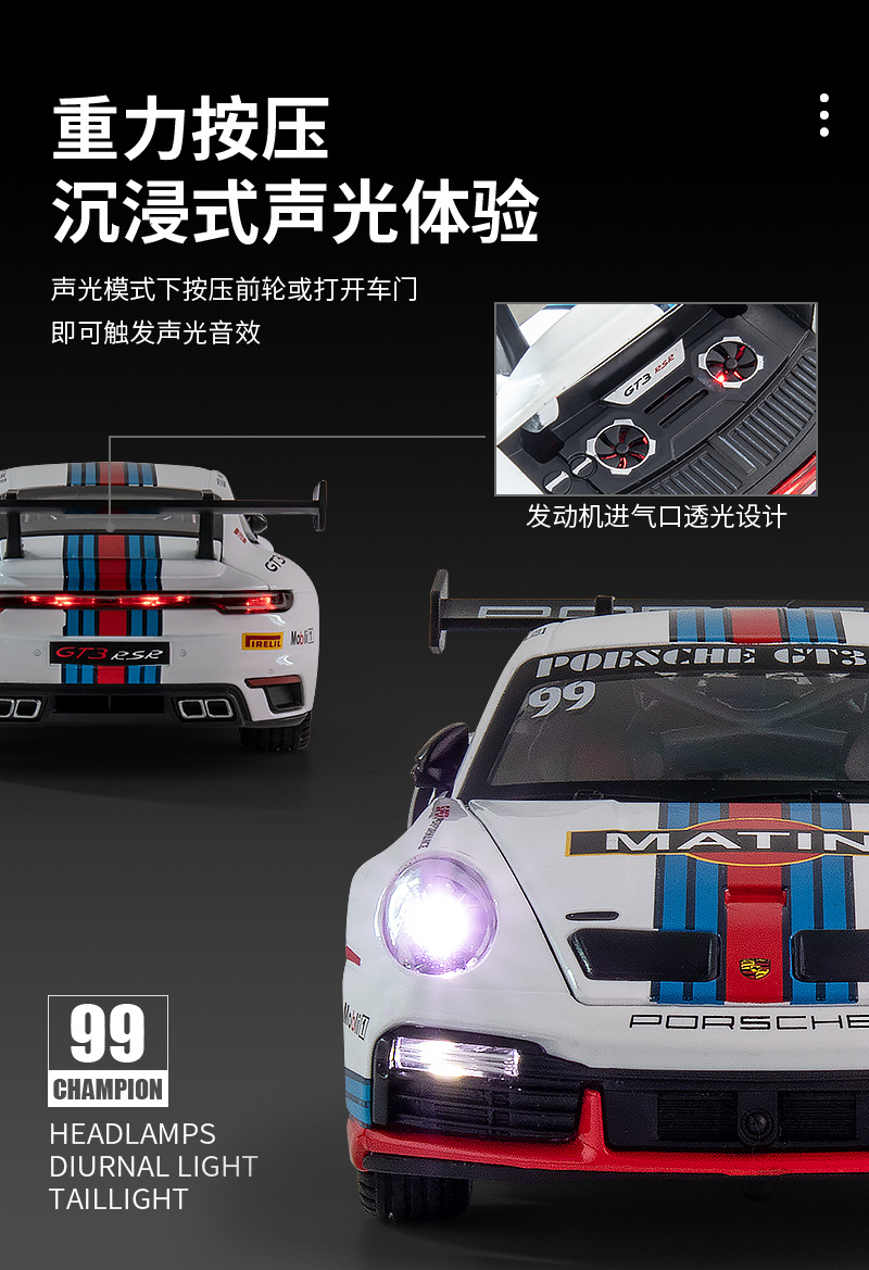 声光儿童玩具1:24保时婕911赛车版跑车车模摆件收藏合金玩具模型
