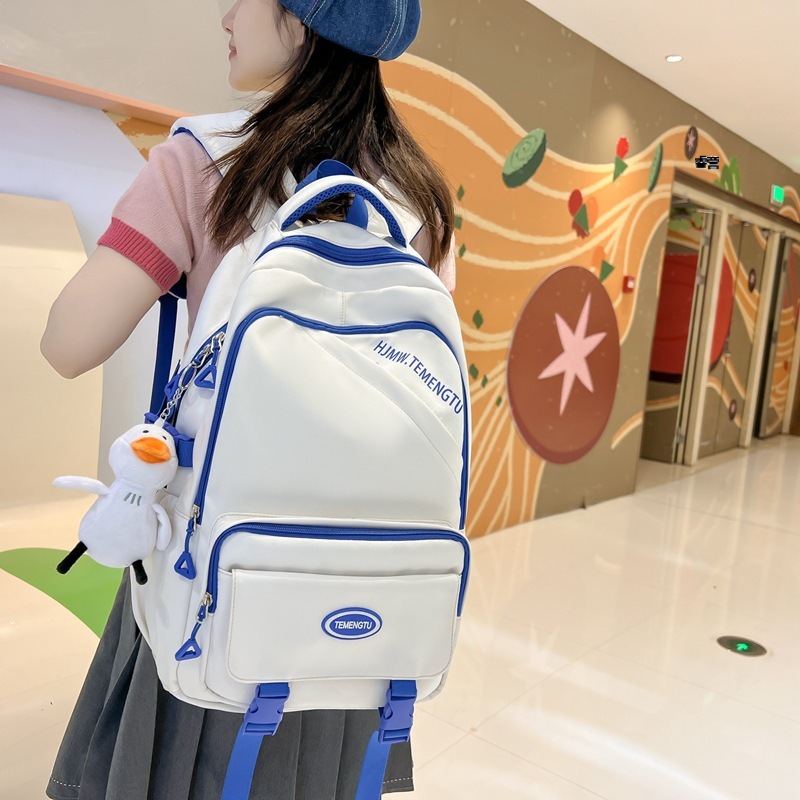 双肩包高中生时尚女撞色书包中学生大学生背包