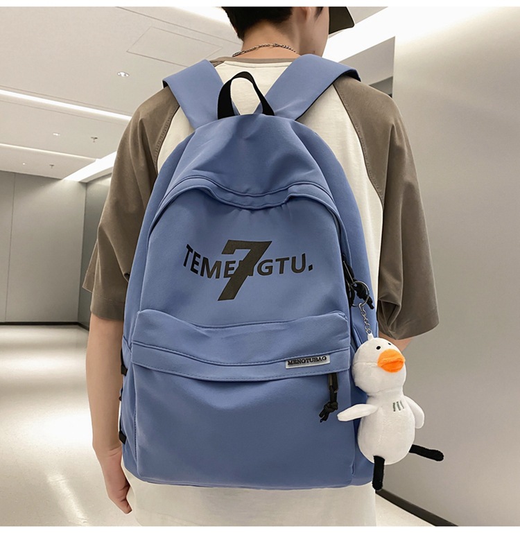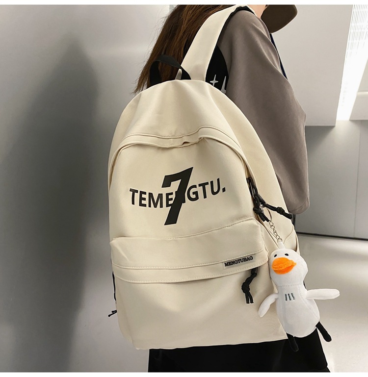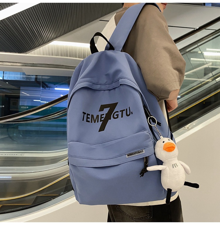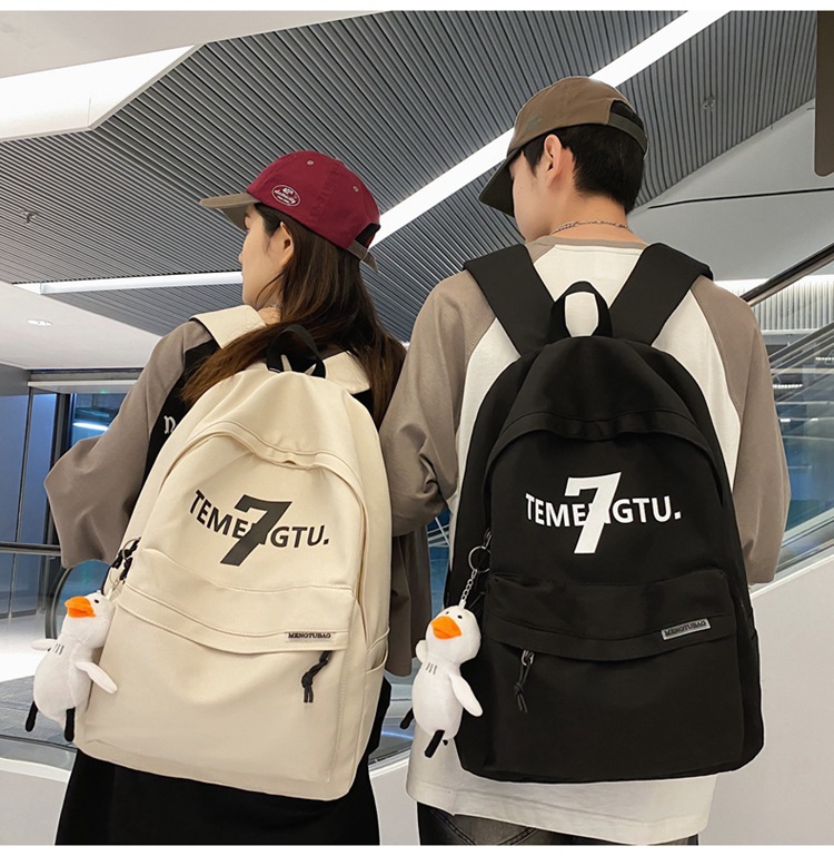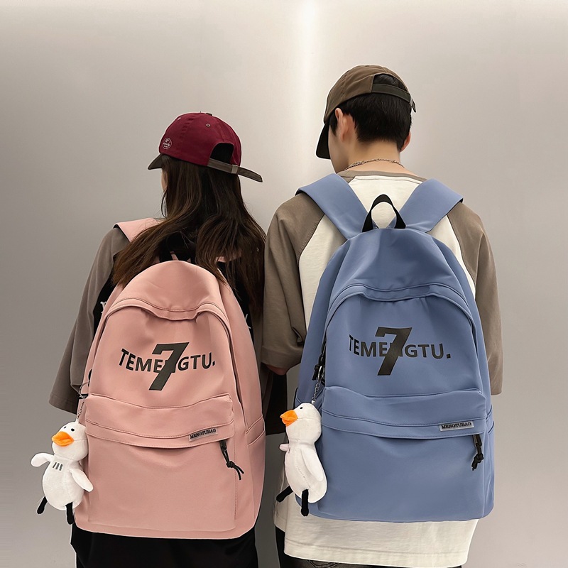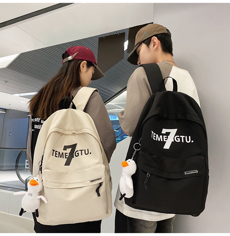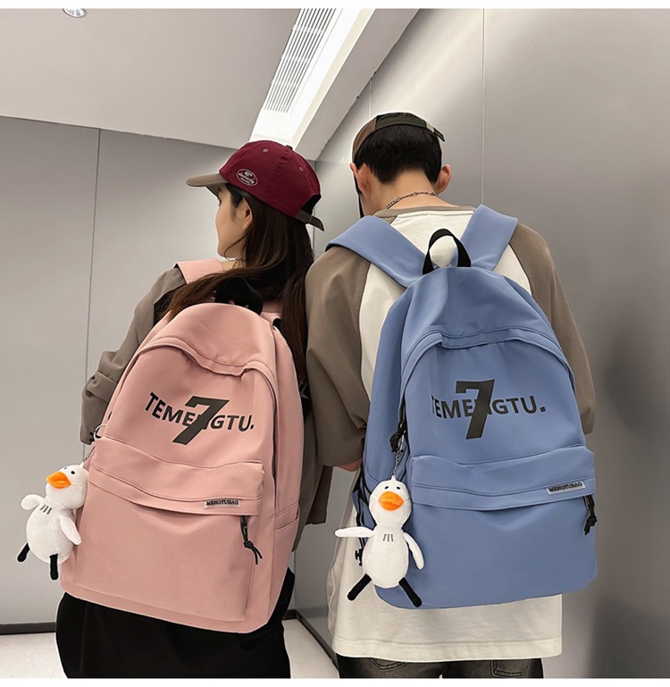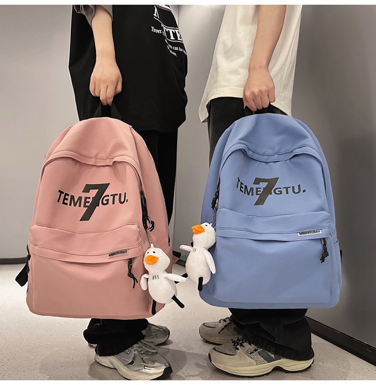 ins风简约纯色情侣2023新款女双肩包男背包中小学生潮流包