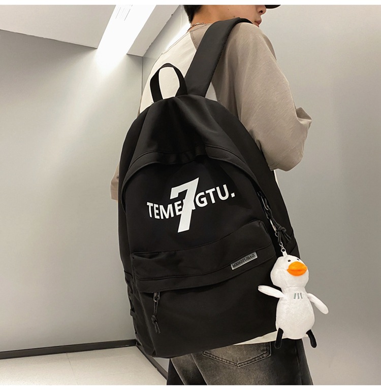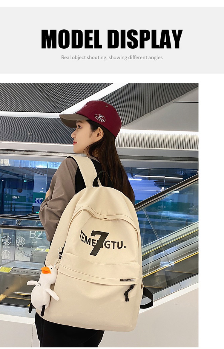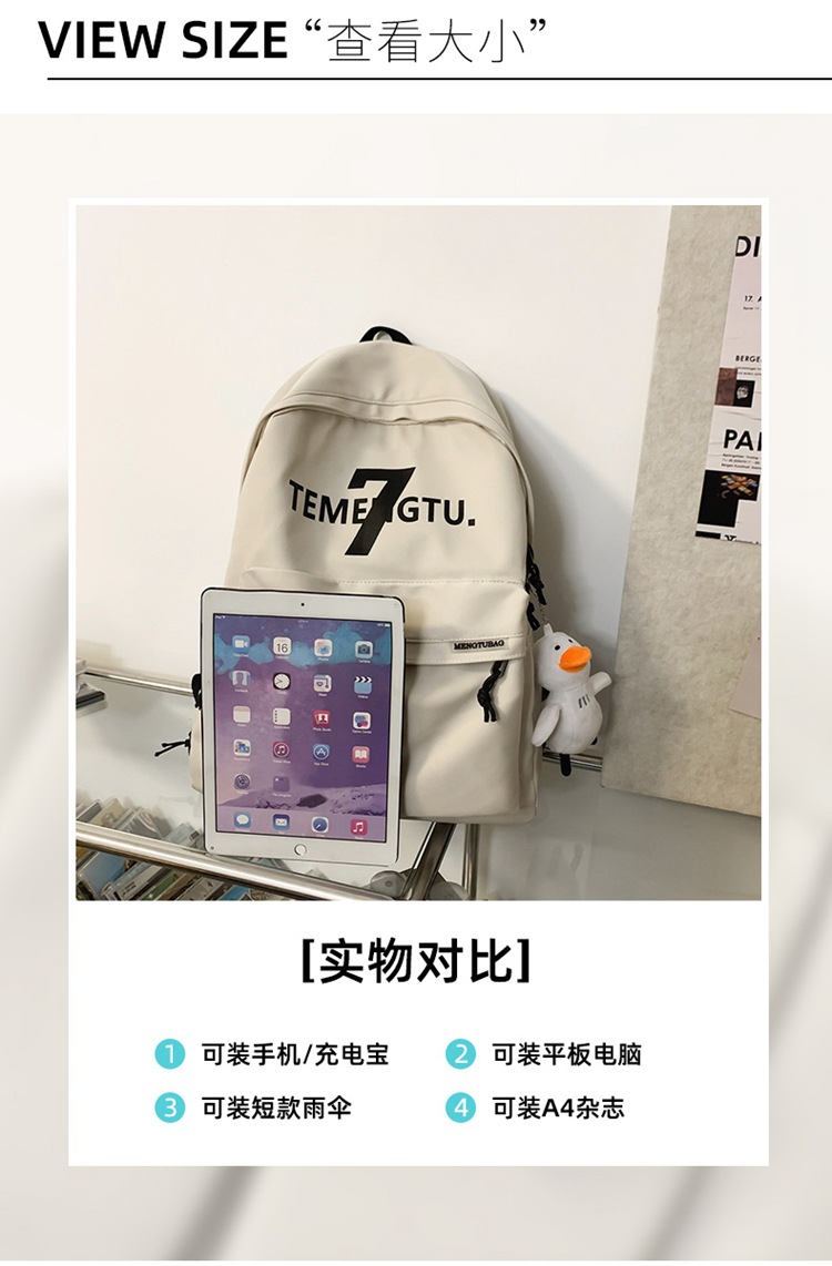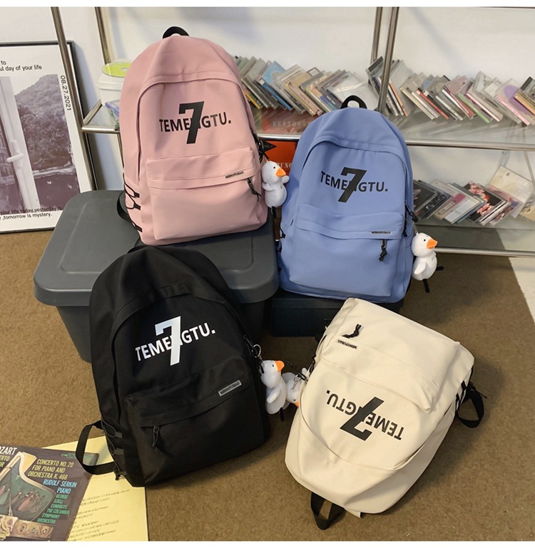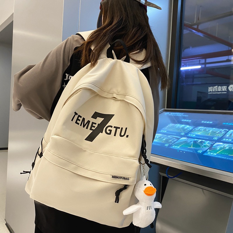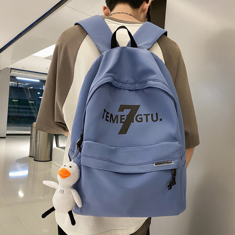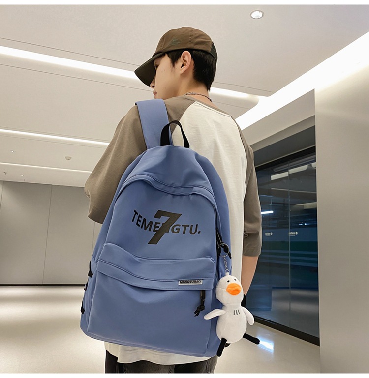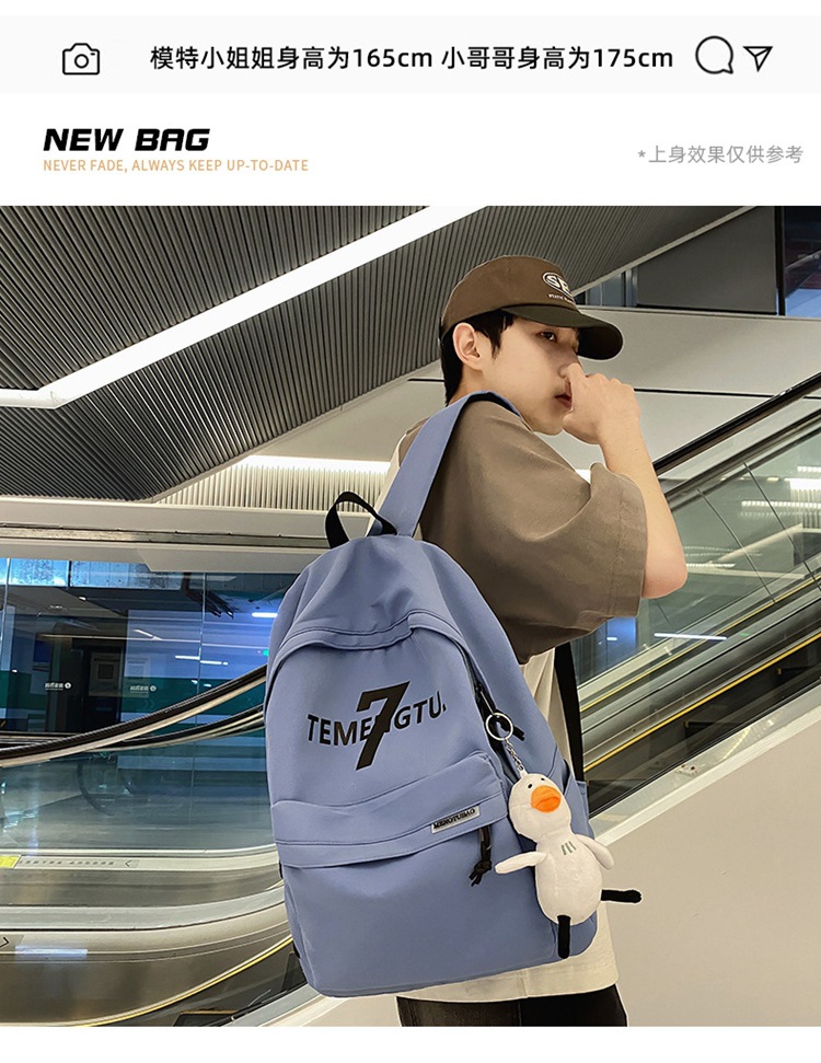 ins风简约纯色情侣2023新款女双肩包男背包中小学生潮流包