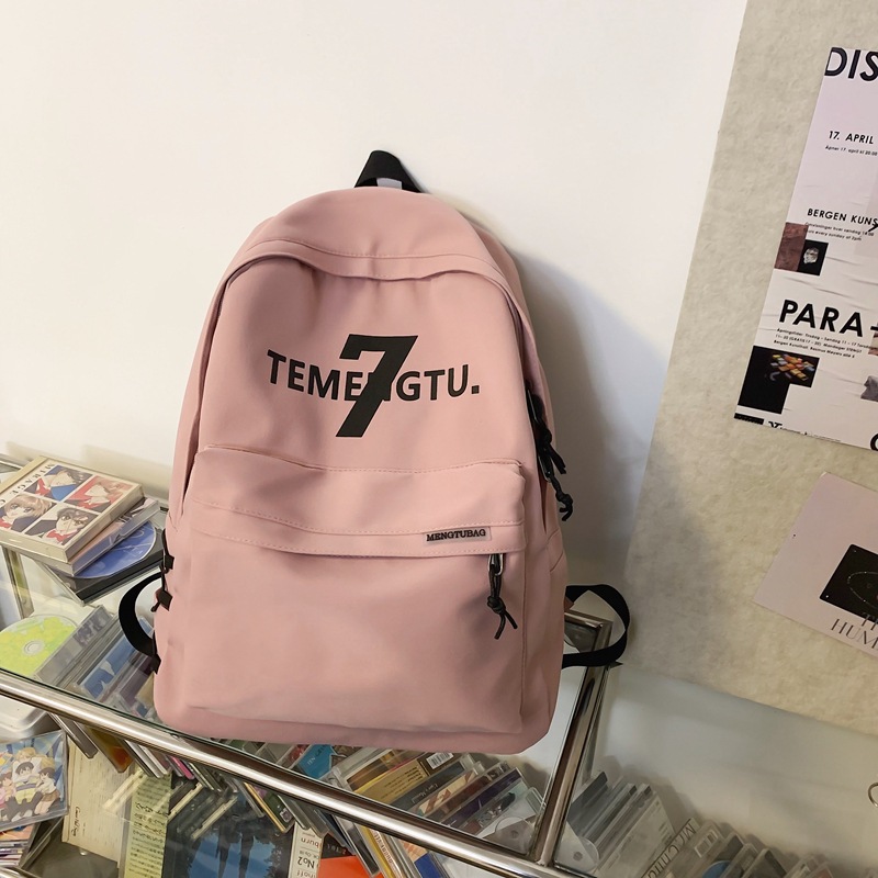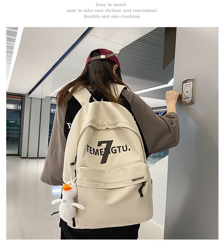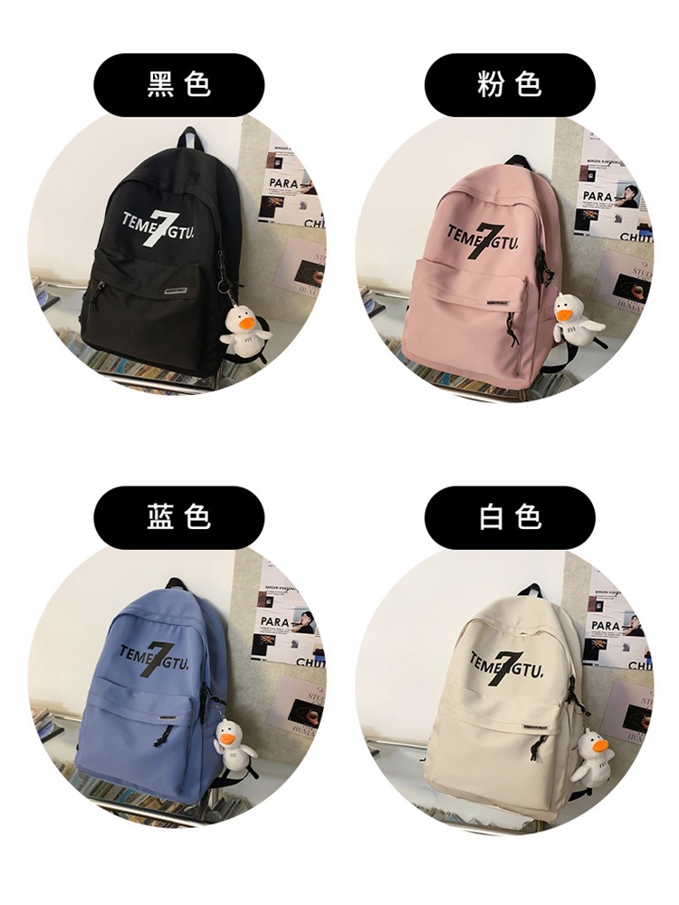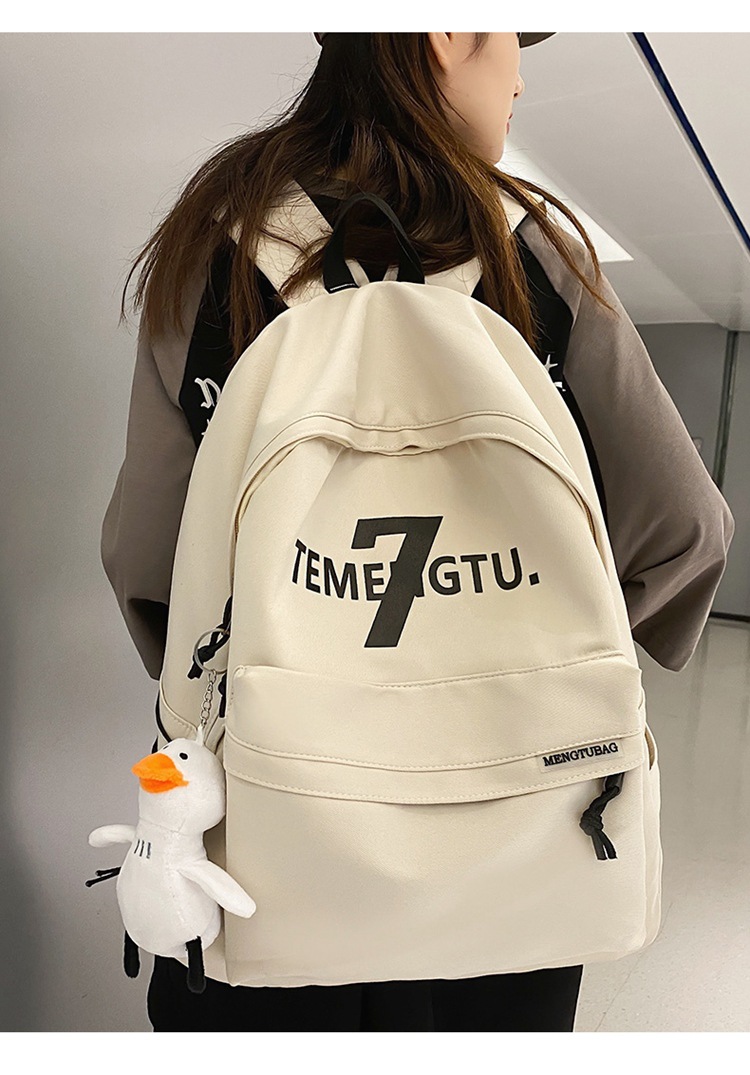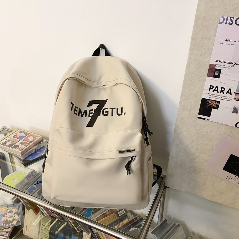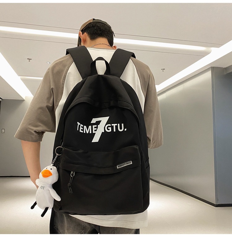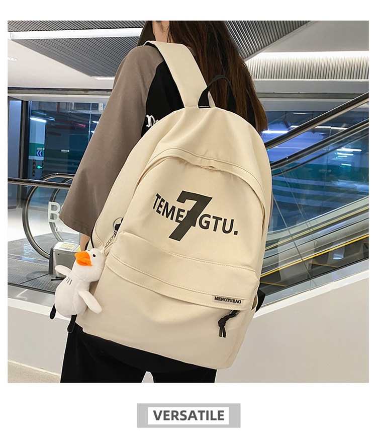 ins风简约纯色情侣2023新款女双肩包男背包中小学生潮流包