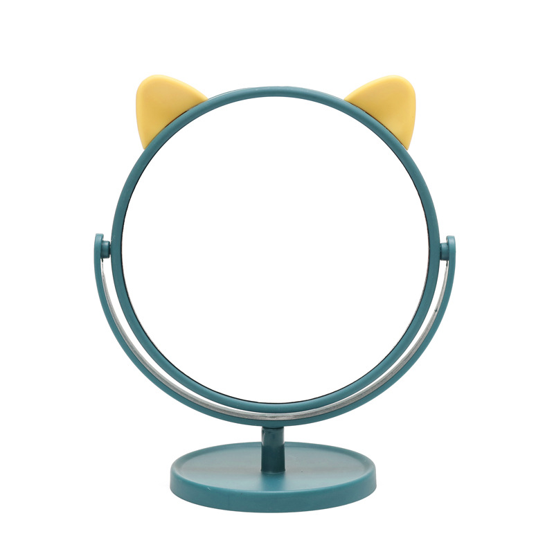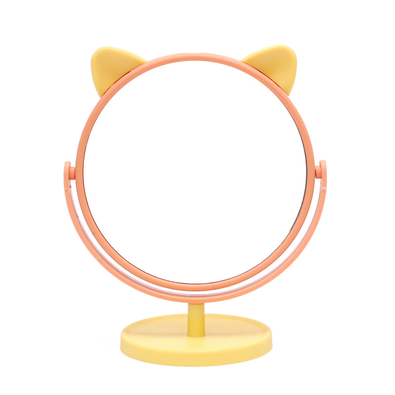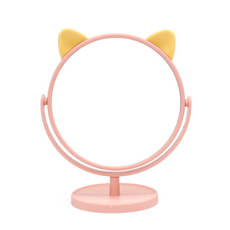 高清台式化妆镜女生梳妆镜学生宿舍镜子便携式公主镜猫耳立式圆镜