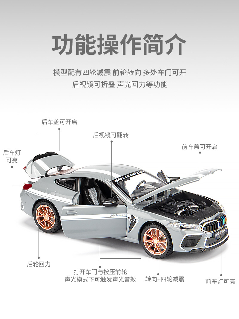 M8雷霆版汽车模型1:24仿真男孩声光回力摆件合金车模批发合金玩具