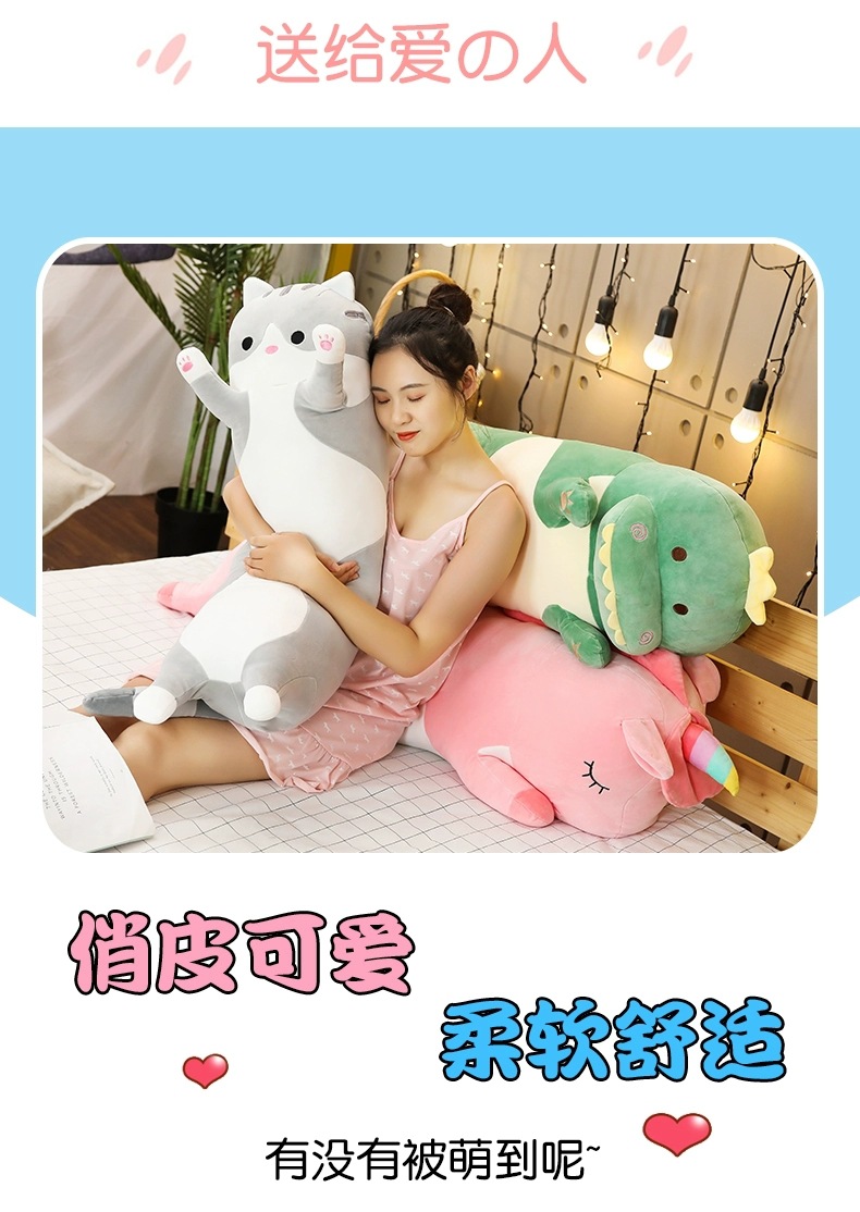 2023新款厂家直销恐龙毛绒玩具可爱长条猫咪抱枕玩偶超级软女生