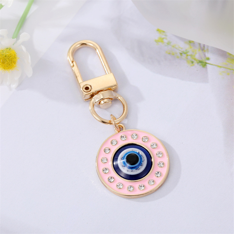 跨境电商合金彩色滴油睫毛眼睛钥匙扣点钻贴片眼球包包挂件配饰