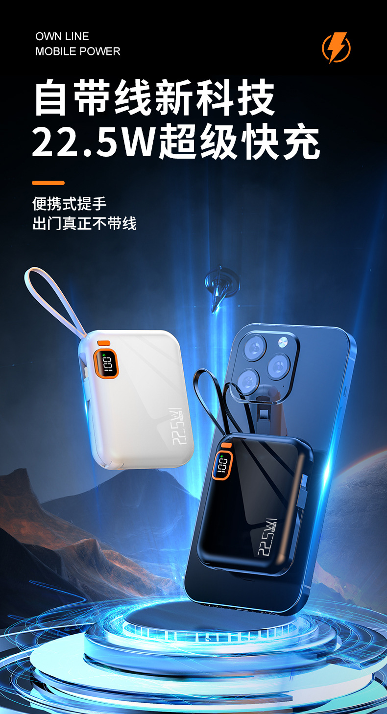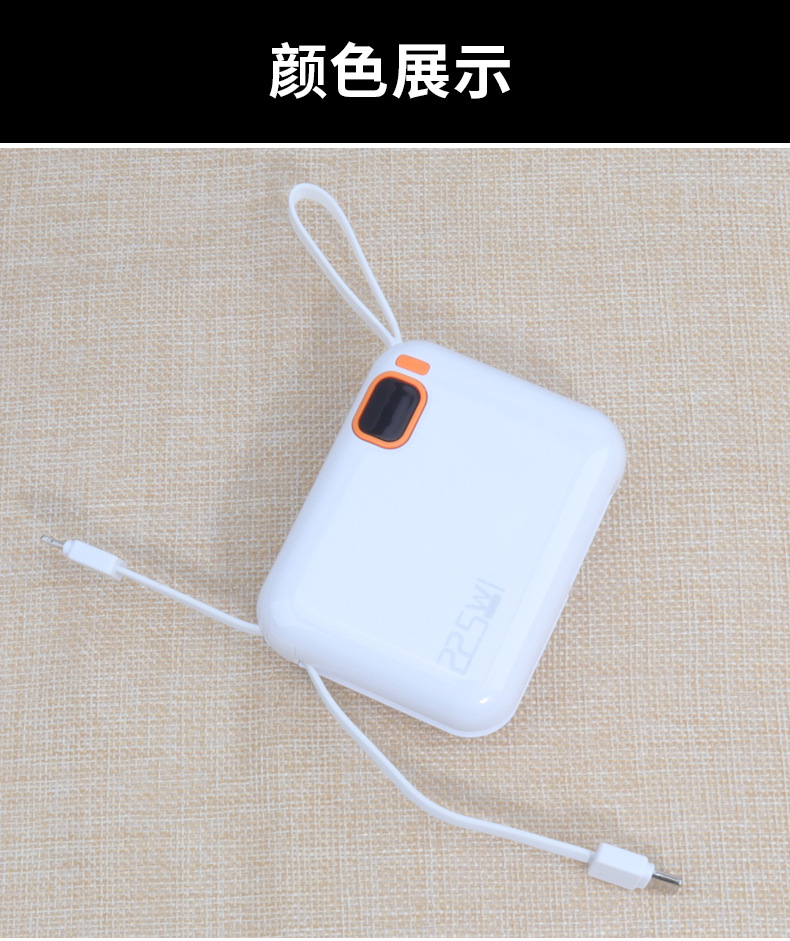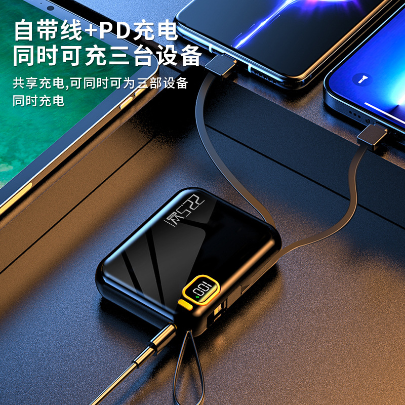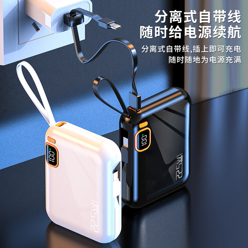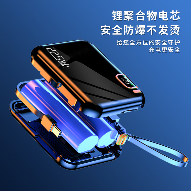 22.5W超级快充充电宝10000毫安PD双向快充迷你自带线移动电源批发