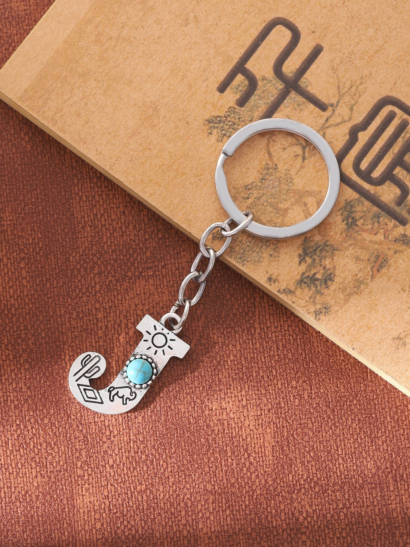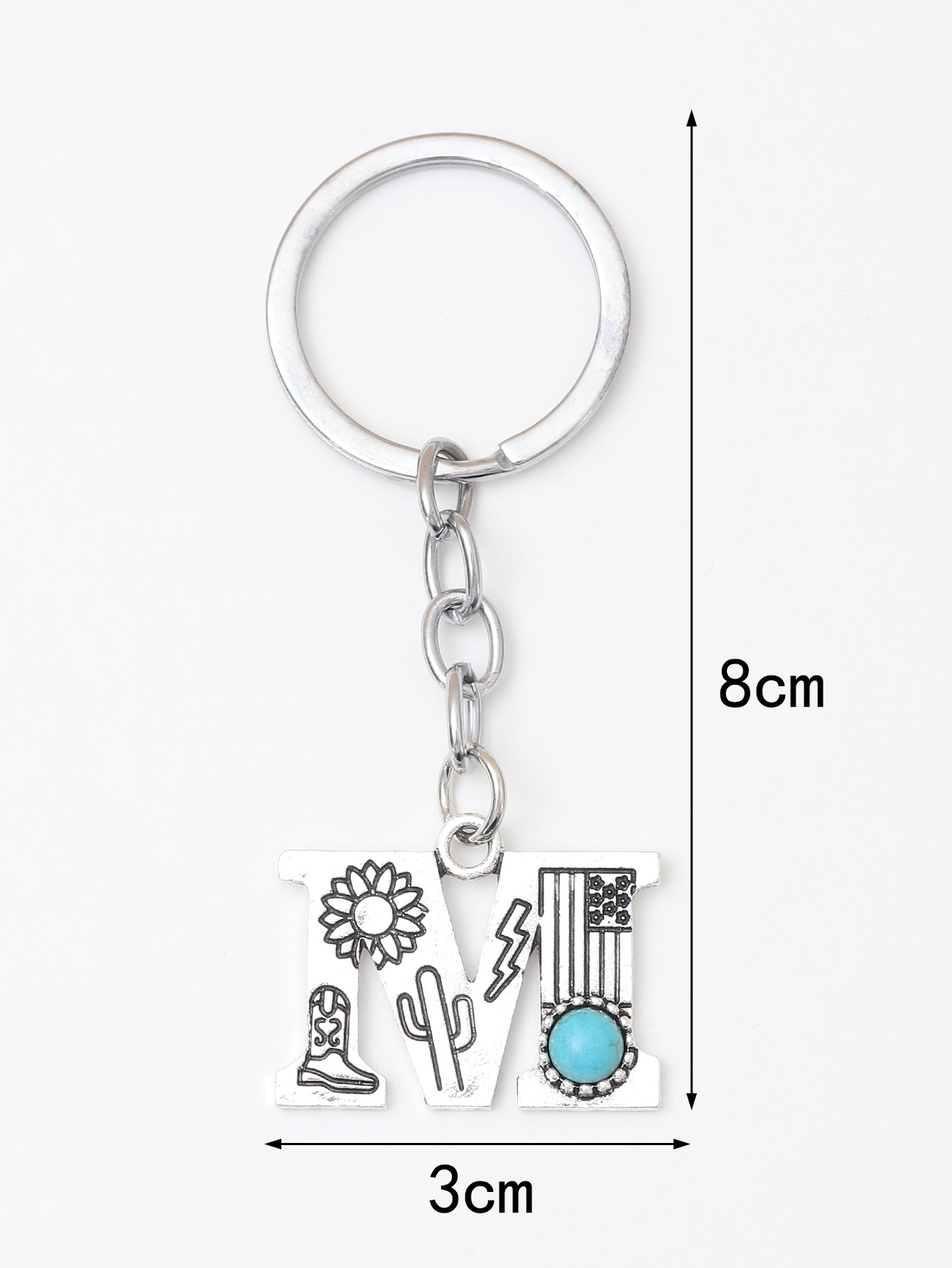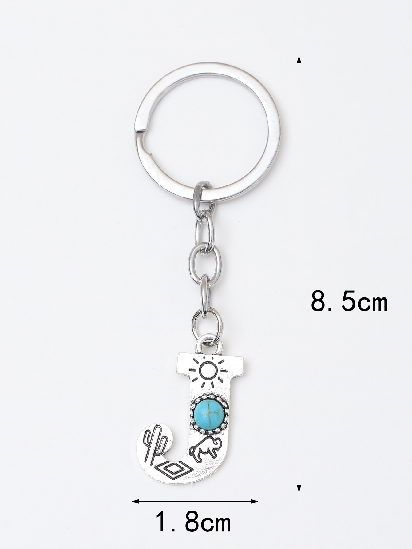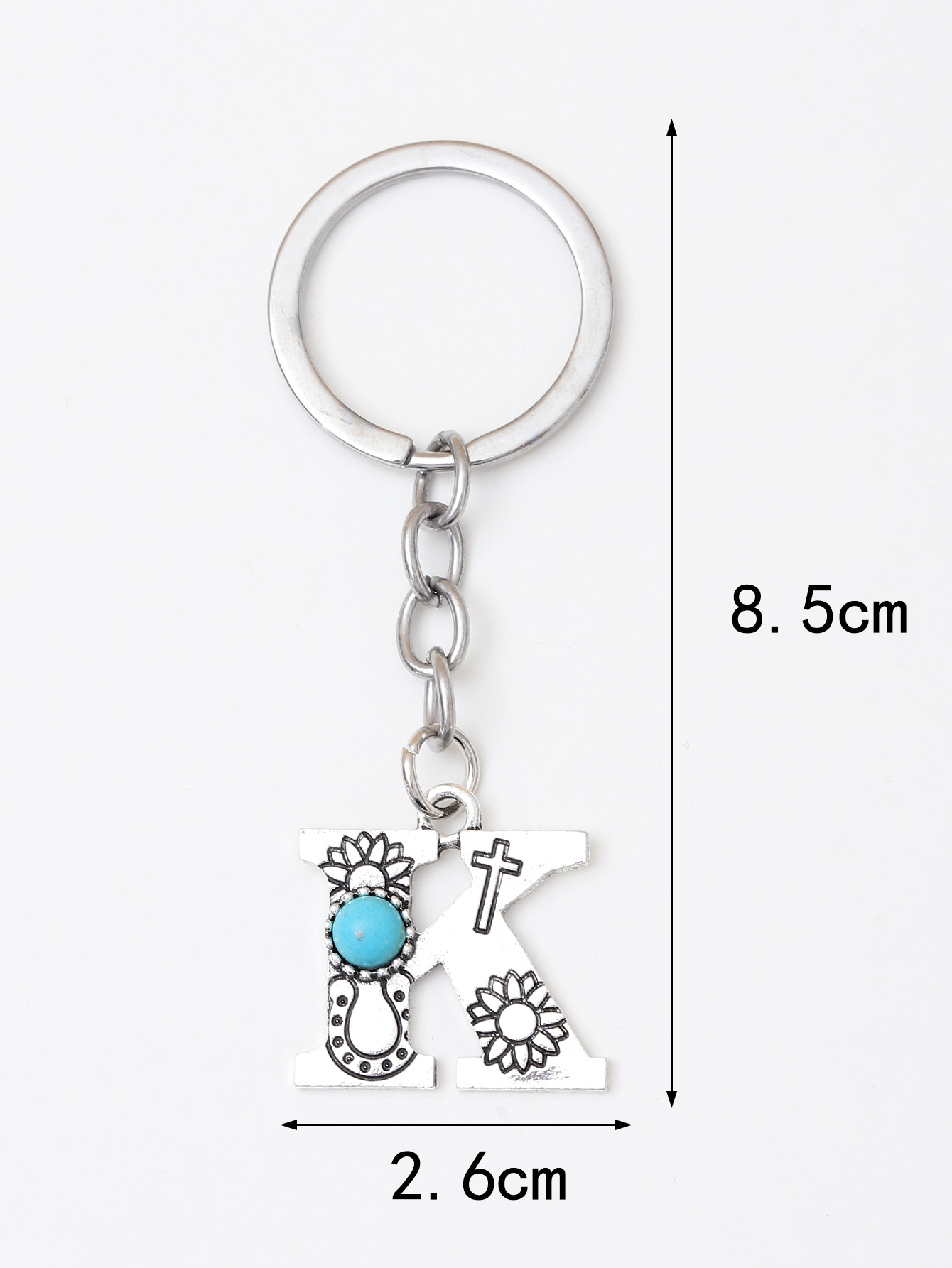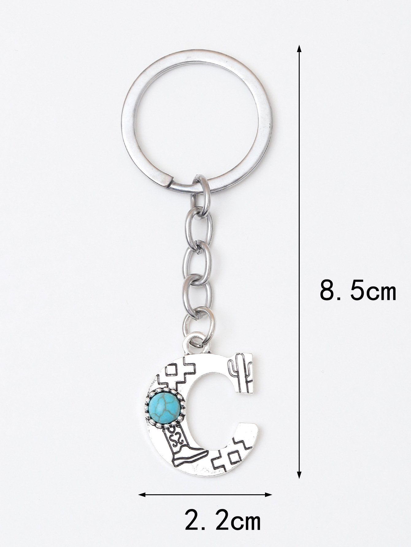 新款字母合金钥匙扣汽车包包挂件天然松石跨境欧美亚马逊