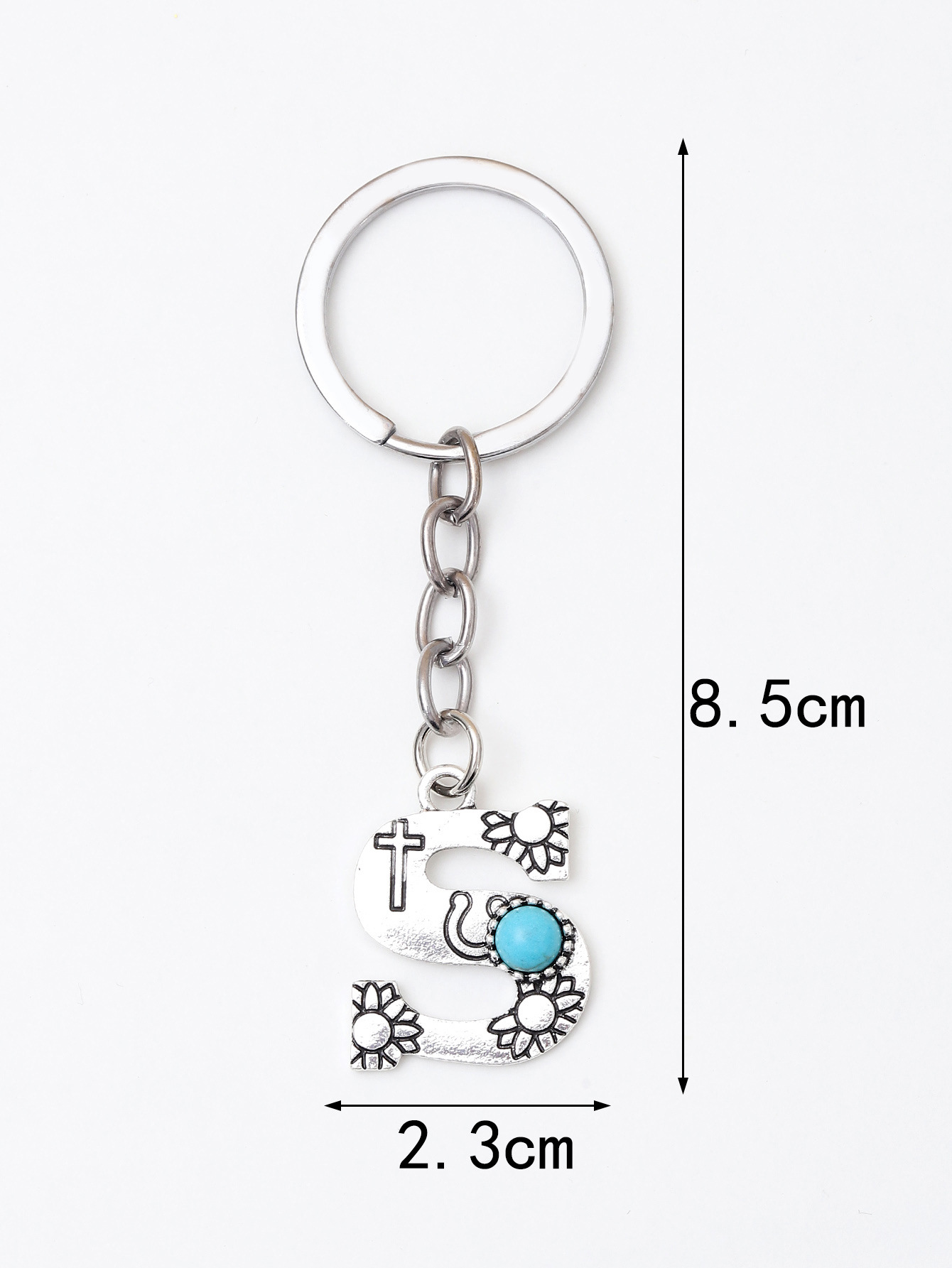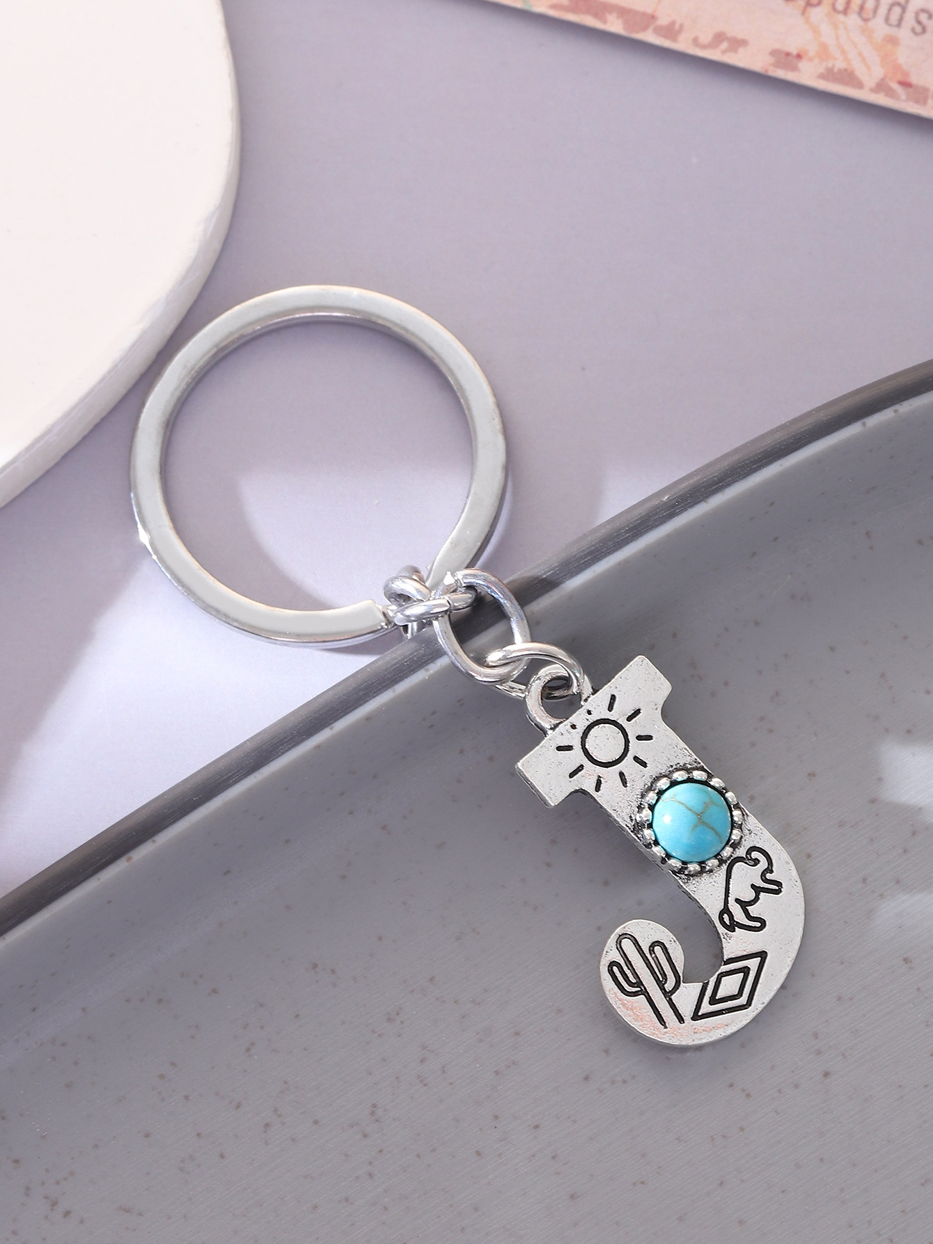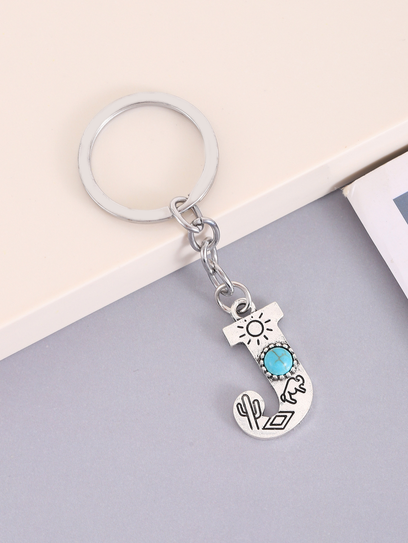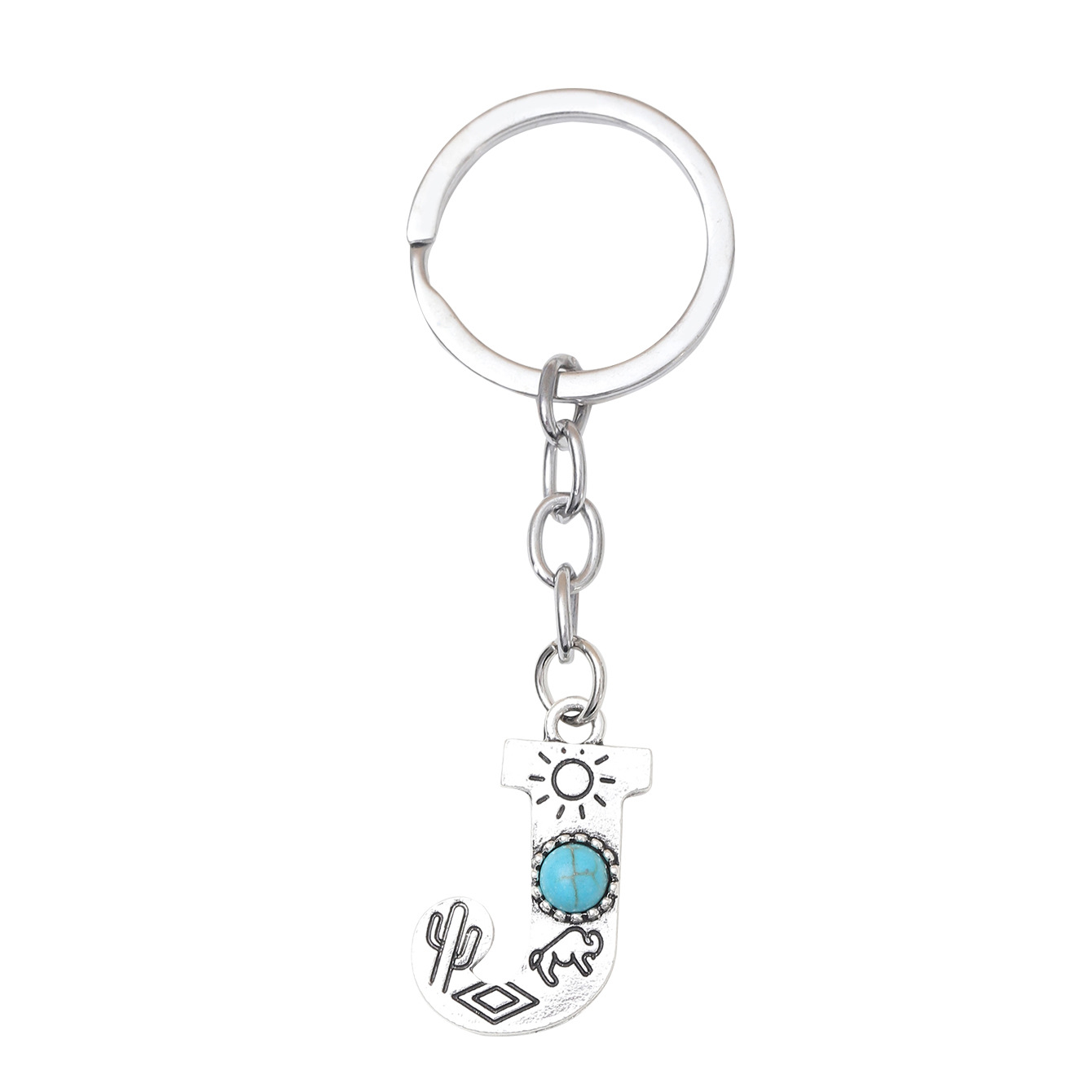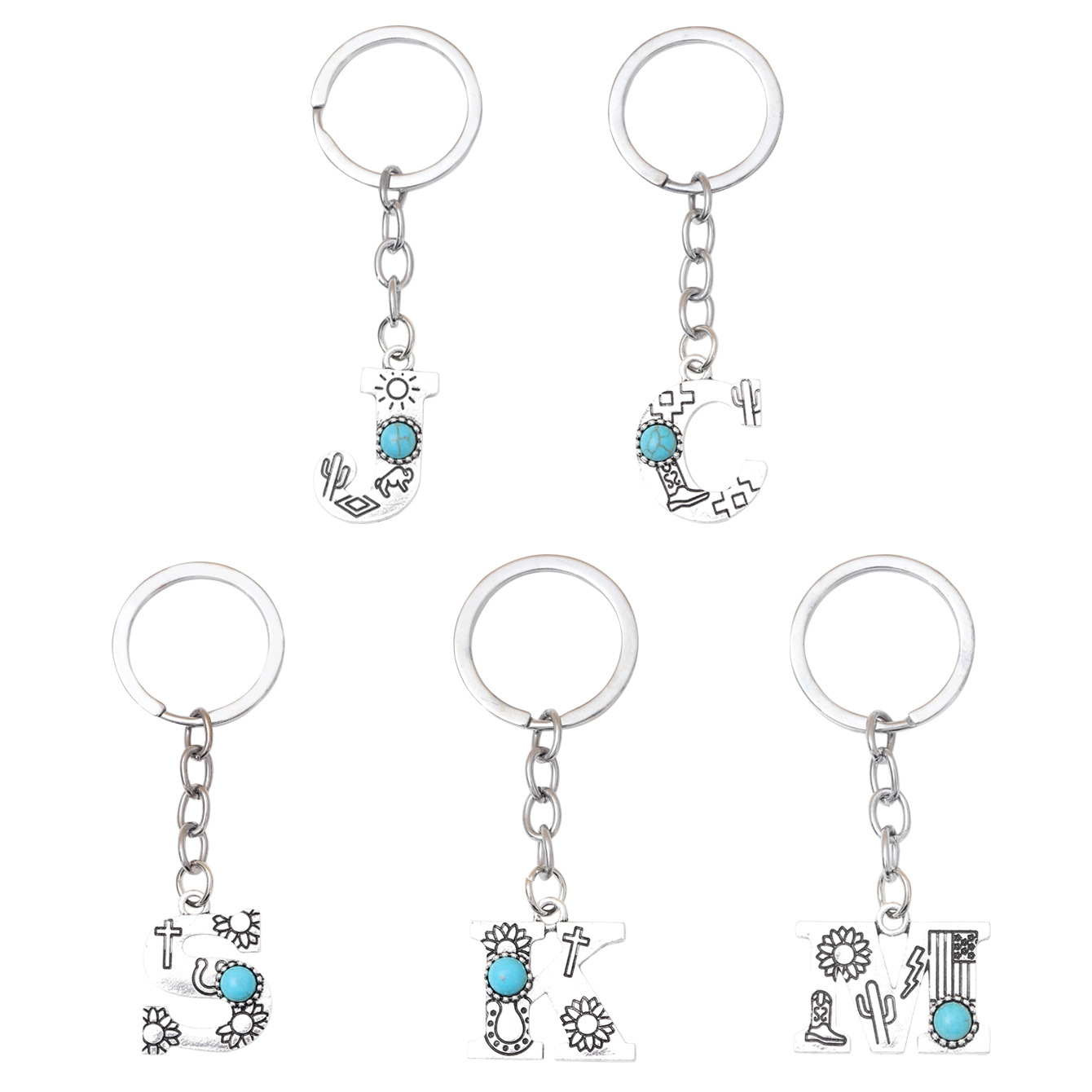 新款字母合金钥匙扣汽车包包挂件天然松石跨境欧美亚马逊