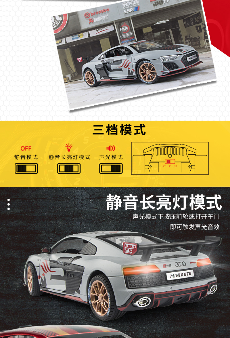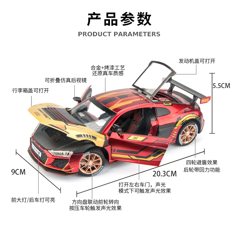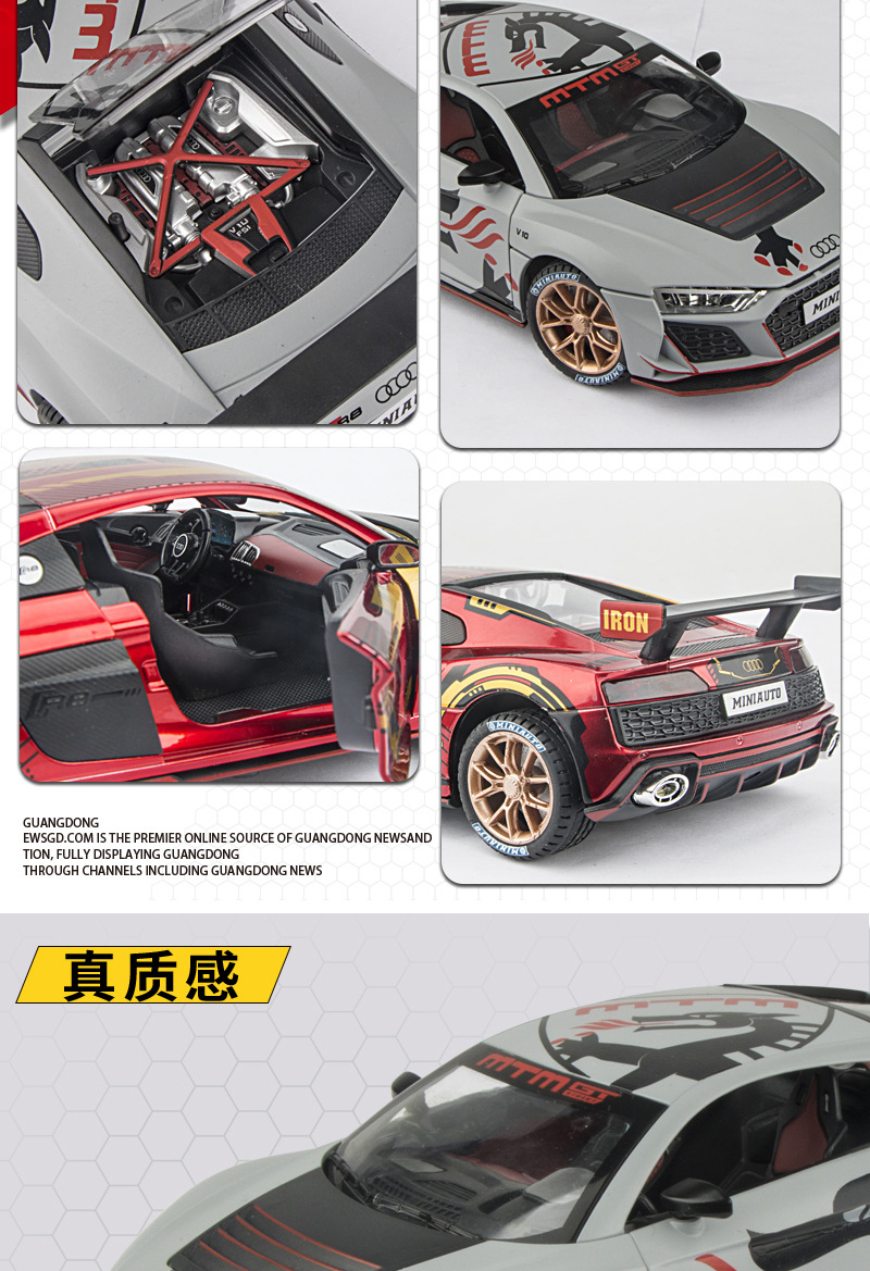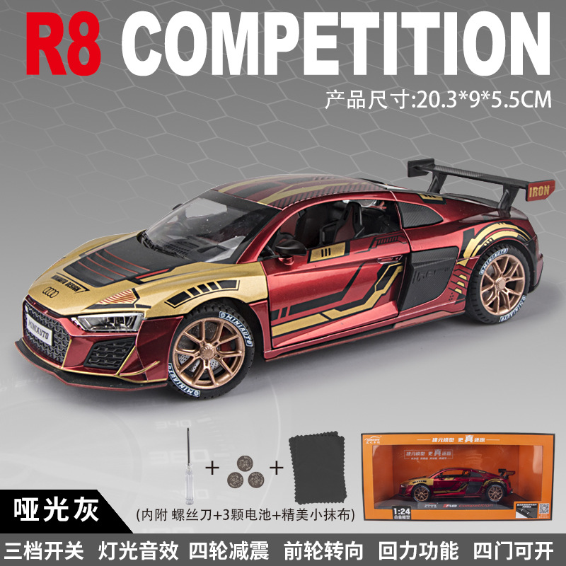 合金玩具1:24奥迪R8赛道版合金车模跑车金属玩具摆件仿真汽车模型