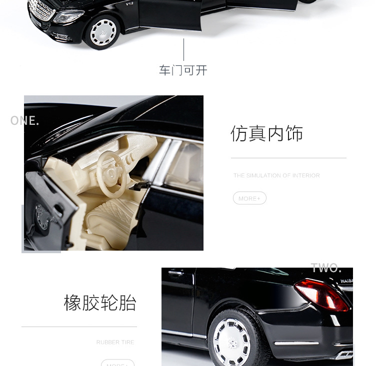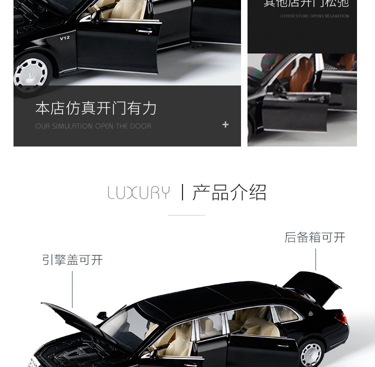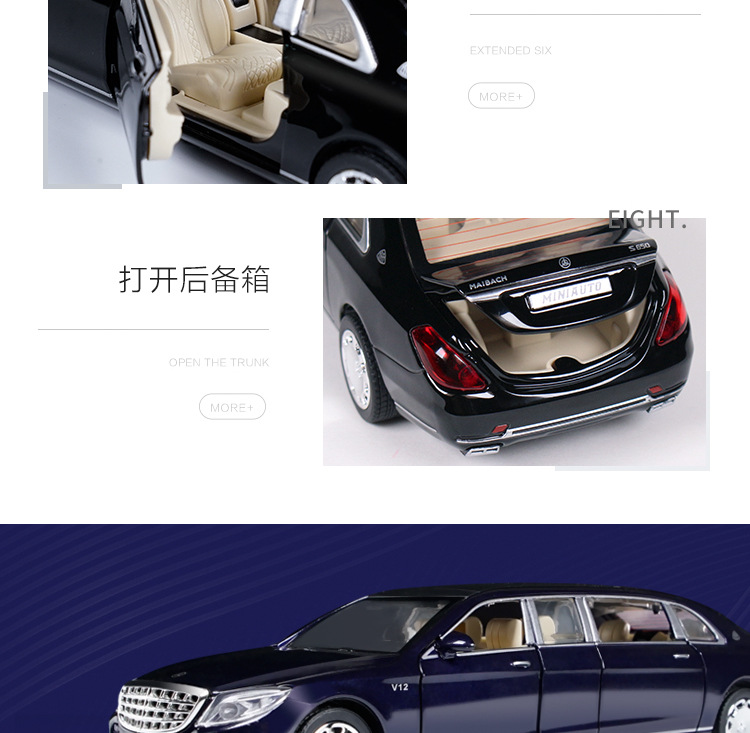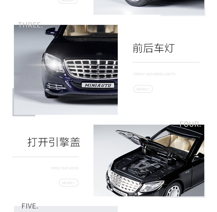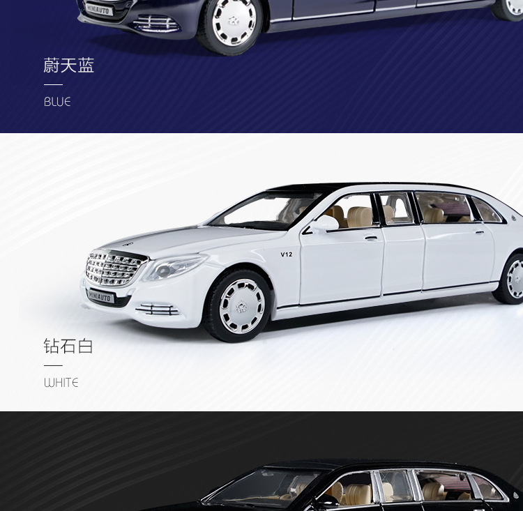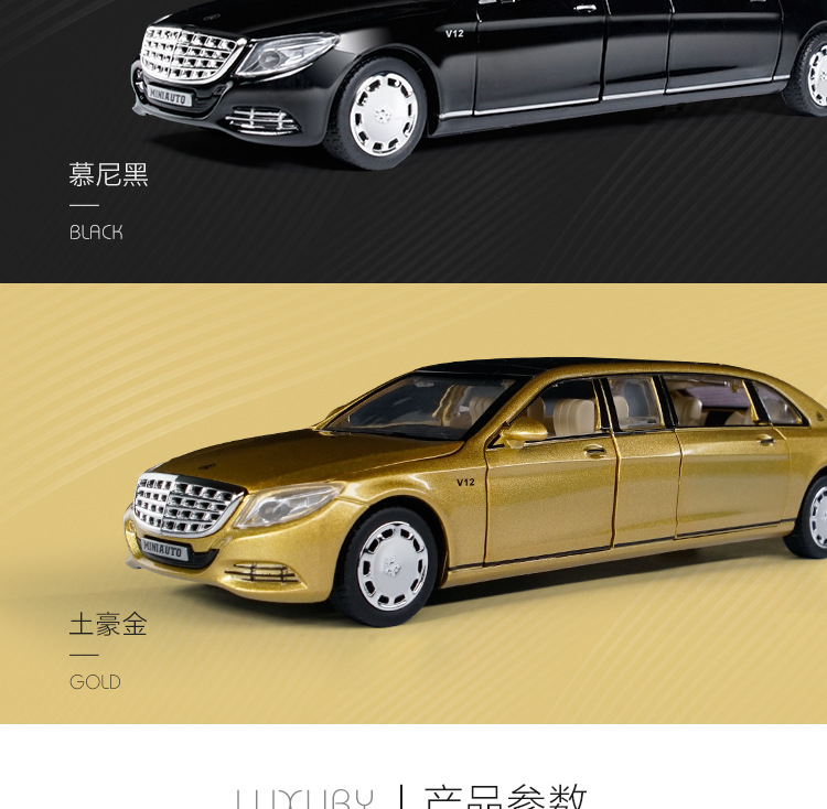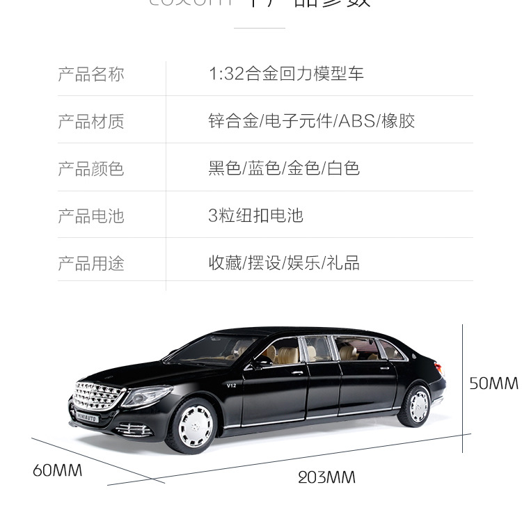 1:32回力合金玩具加长版迈巴赫合金车模仿真汽车模型摆件收藏礼品
