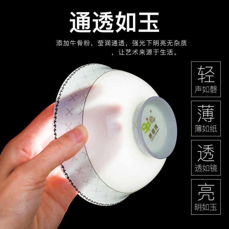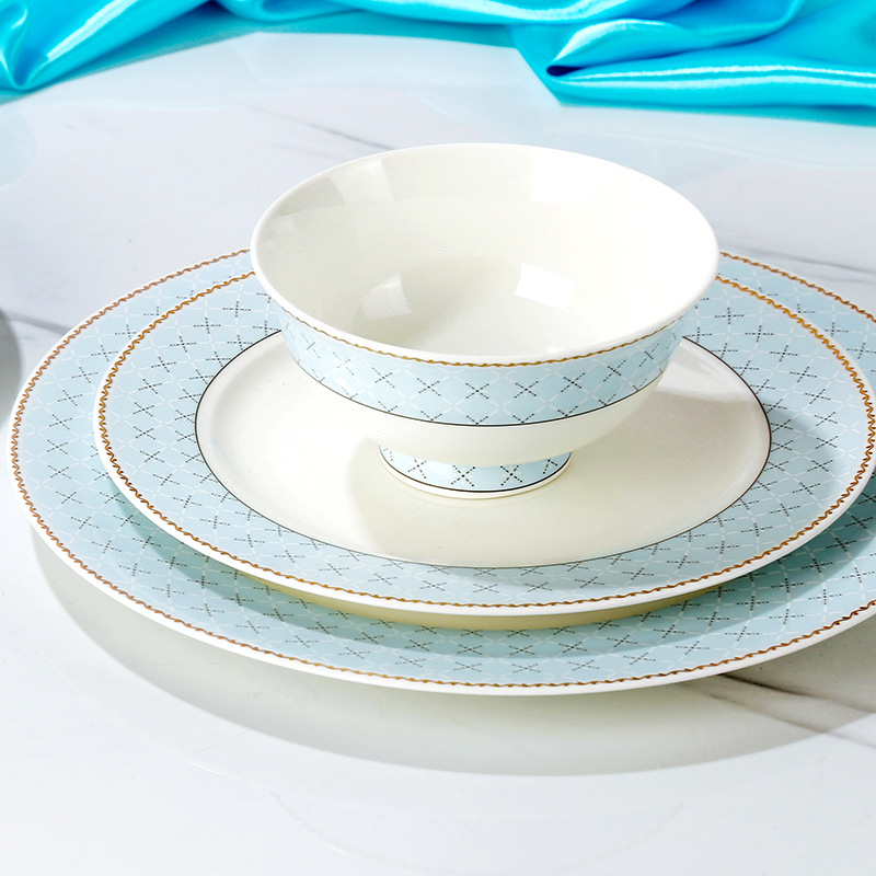 骨质瓷餐具边花韩式碗碟盘套装家用中式金边碗碟盘套装礼品餐具
