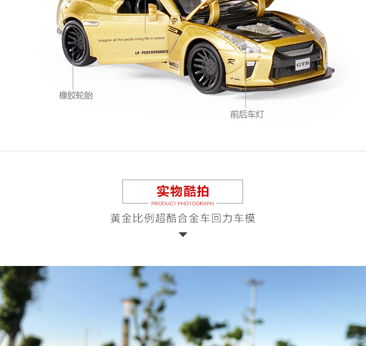 合金玩具日产GTR合金车模1:32声光回力车仿真玩具车汽车模型摆件