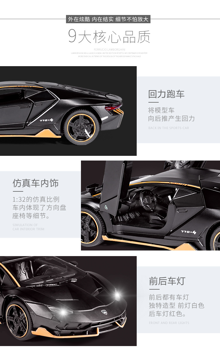 1:32兰博LP770机尼合金跑车模型合金玩具车汽车模型男孩礼物