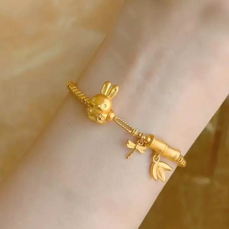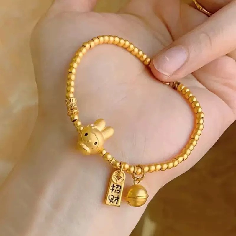 竹节兔子生肖手链女2023年新款本命年满圈金珠手环手串手饰