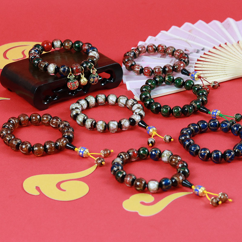 精品香灰琉璃手串手链五彩多宝吞金兽佛珠文玩北京老秦款手串批发