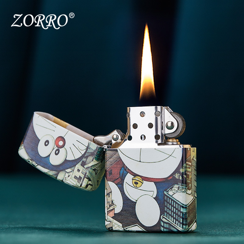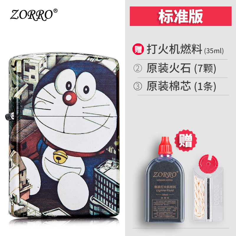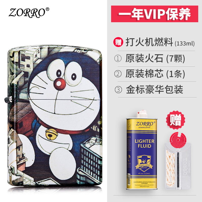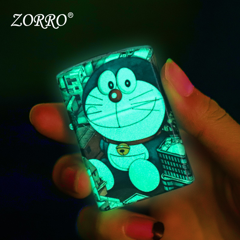 佐罗金属煤油防风夜光打火机ZT10-160夜光蓝胖子彩绘批发打火机
