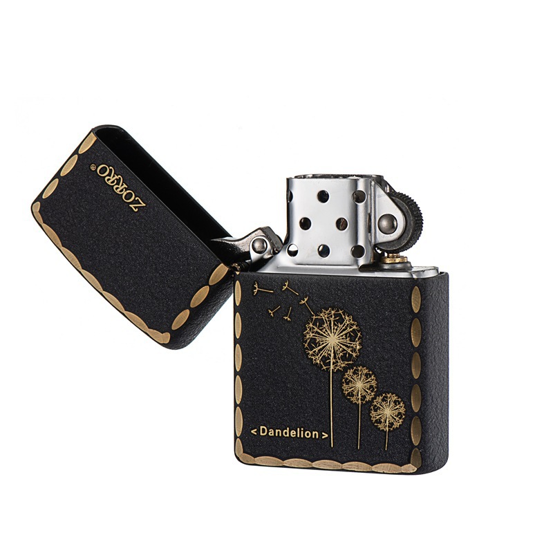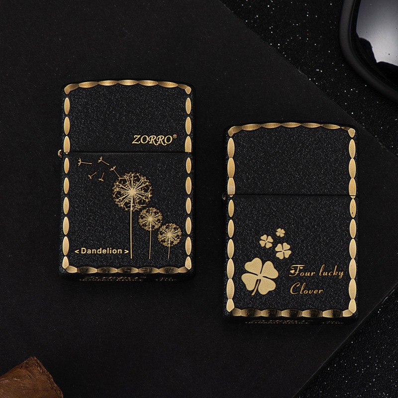 跨境佐罗Z9890创意黑砂打边纯铜壳煤油打火机男士高档礼品批发