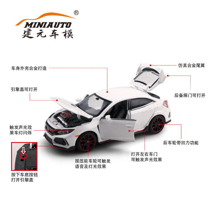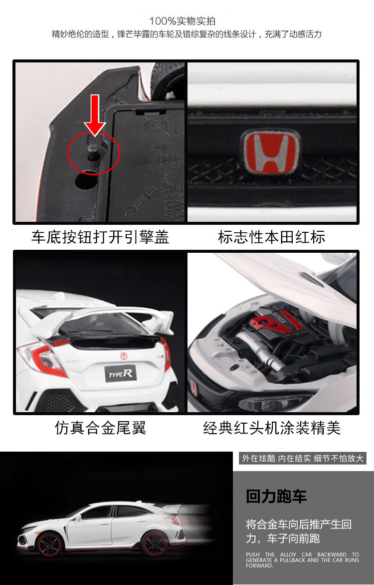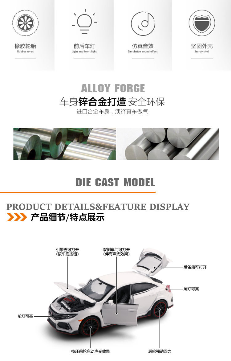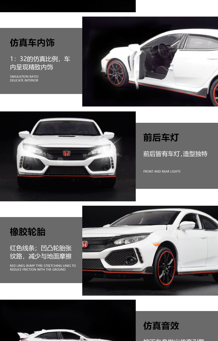 仿真回力车思域合金汽车模型1:32摆件儿童男孩合金玩具收藏礼品
