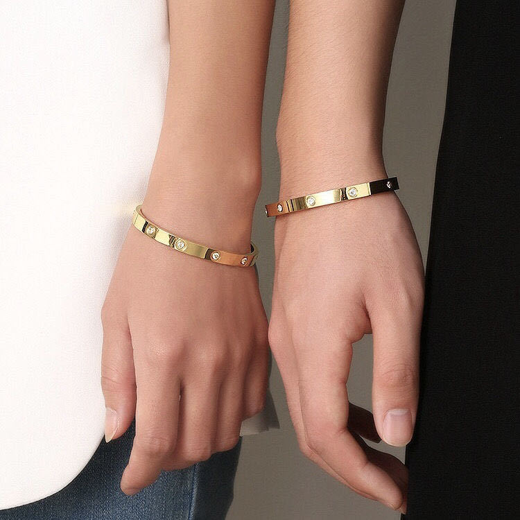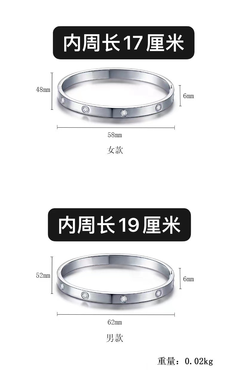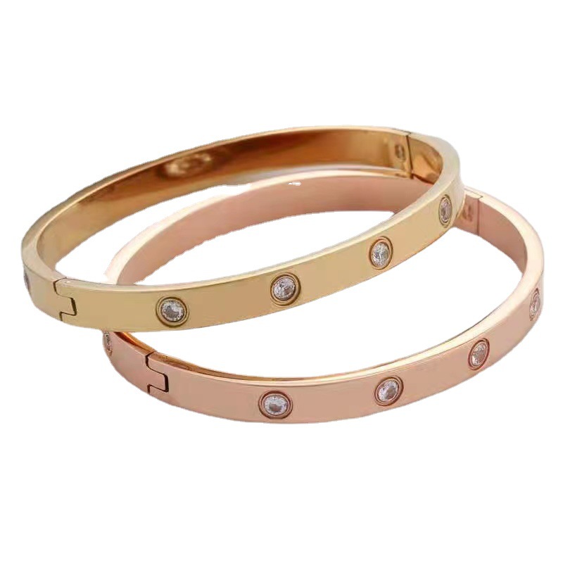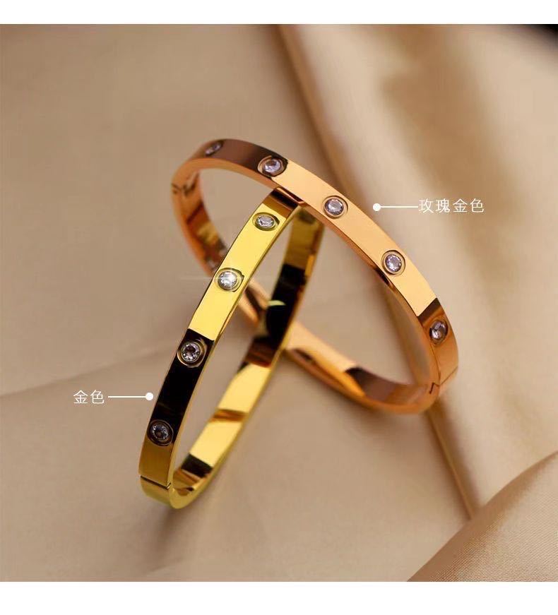 不掉色不掉钻十钻钛钢手镯潮流满天星满钻钛钢首饰手环玫瑰金卡家