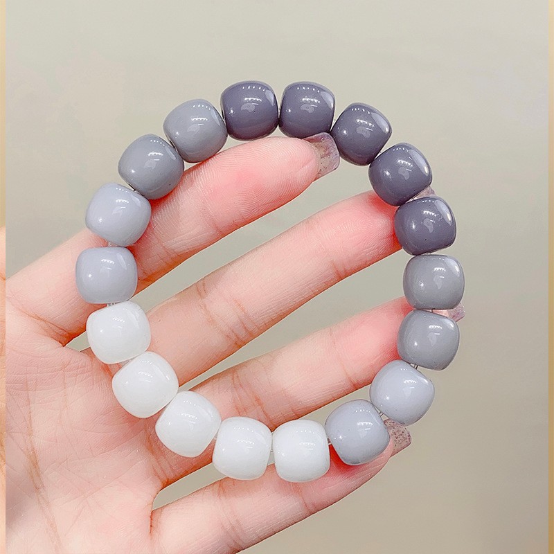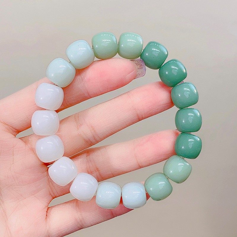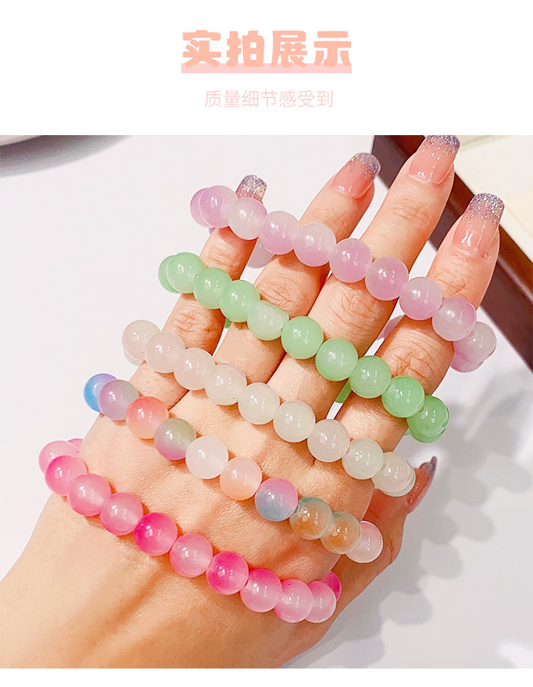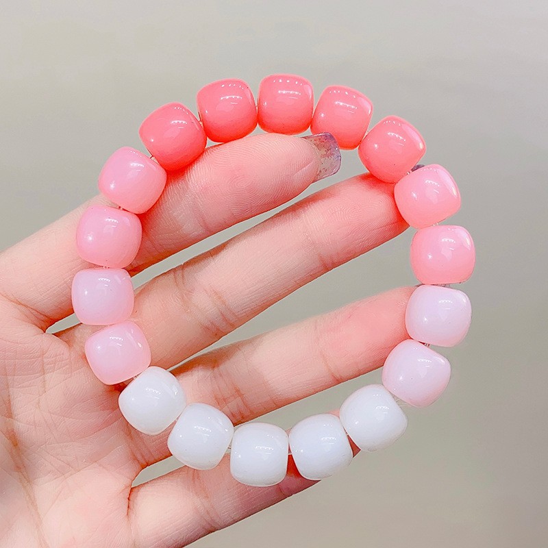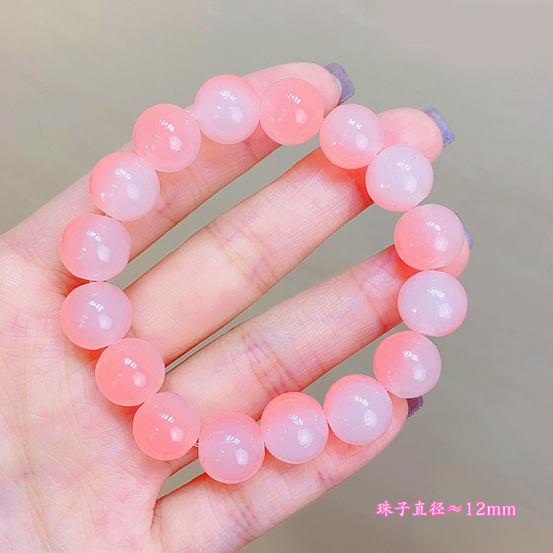 菩提手串女冰透渐变粉色圆珠绕指柔仿白玉盘玩手链学生手环手饰品