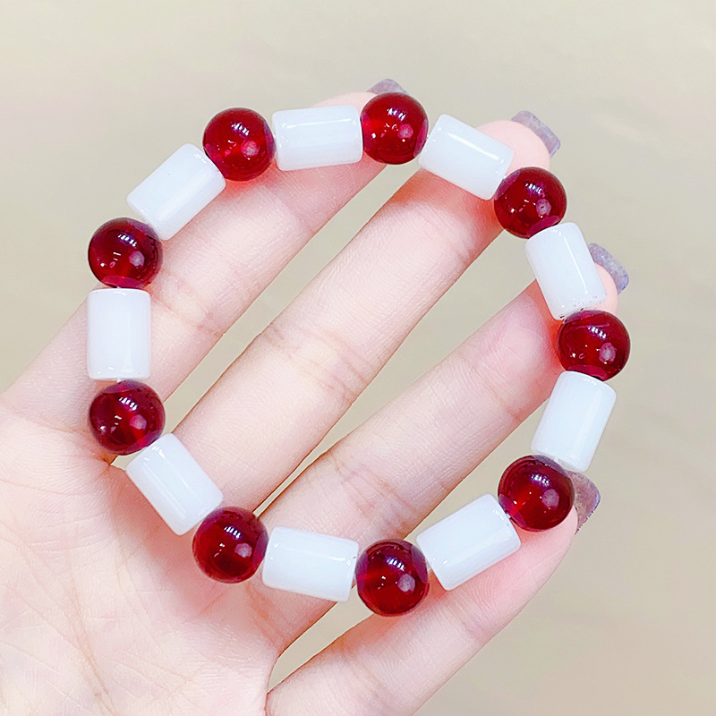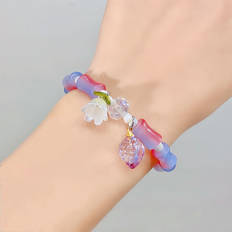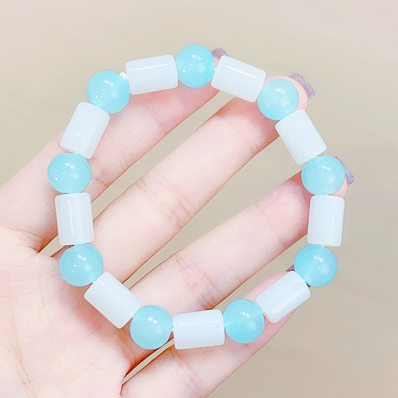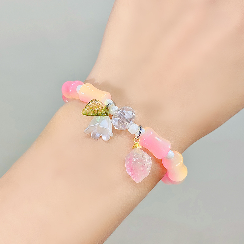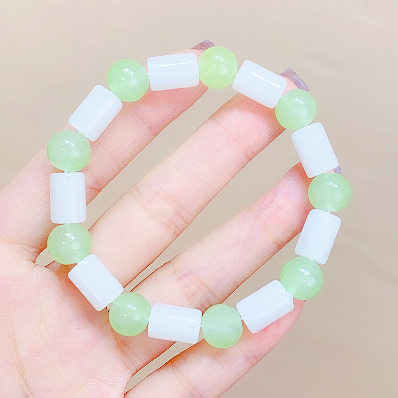 菩提手串女冰透渐变粉色圆珠绕指柔仿白玉盘玩手链学生手环手饰品