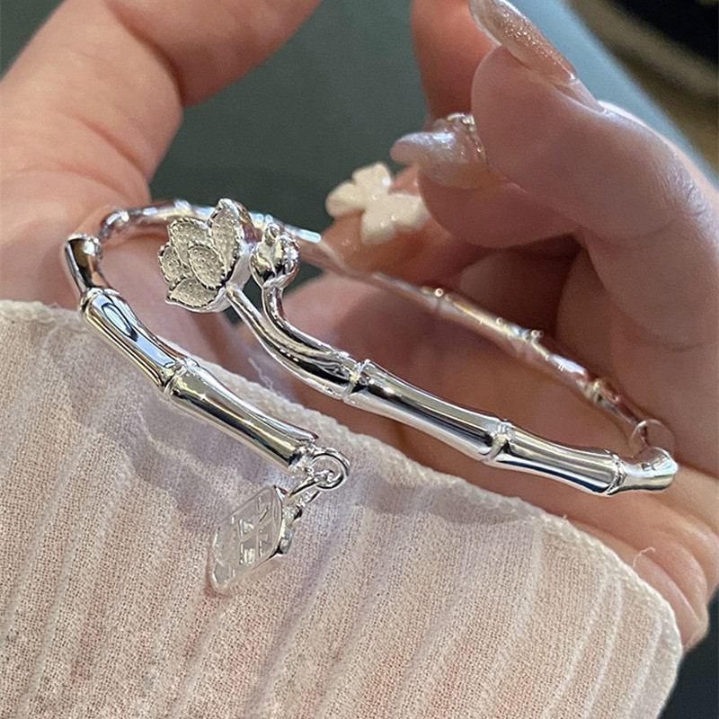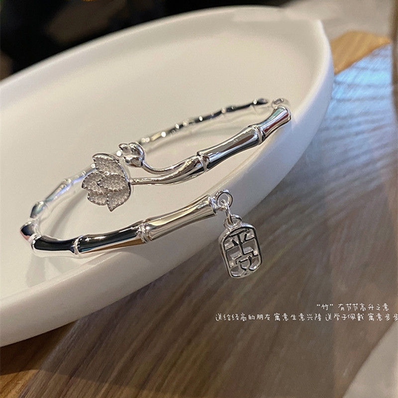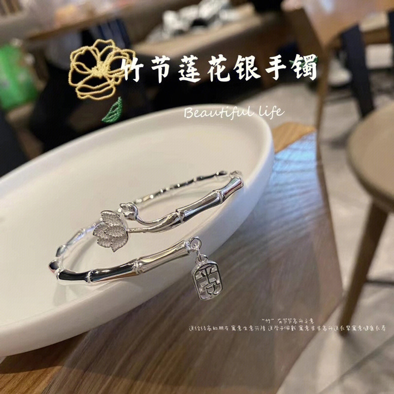 直播货源白铜镀银竹节手镯年轻款竹报平安手环送女友礼物小众饰品