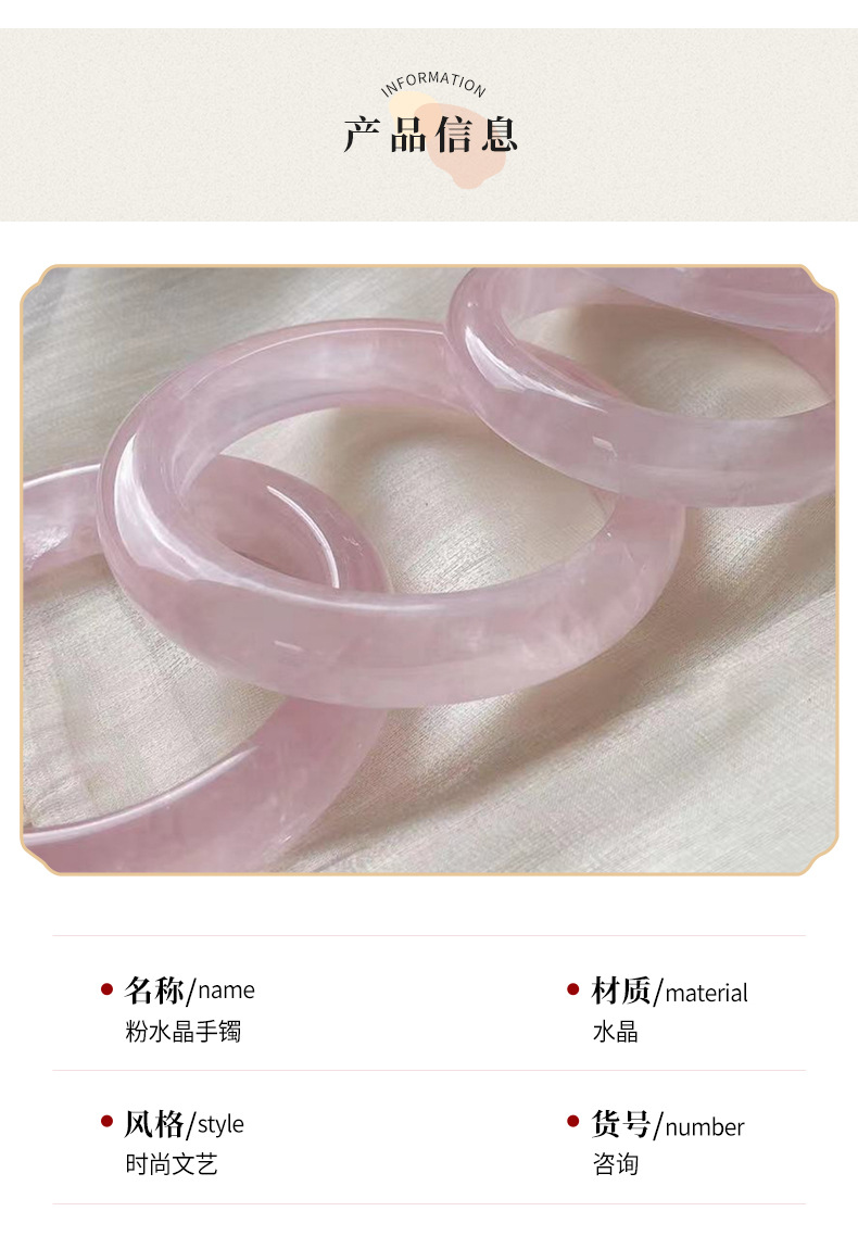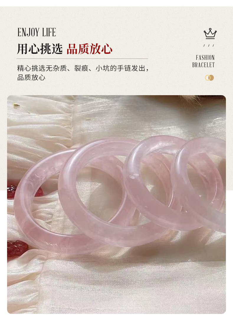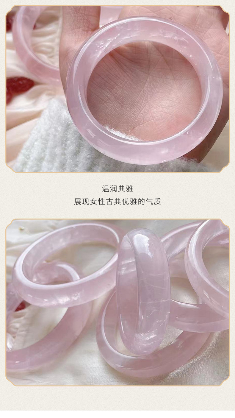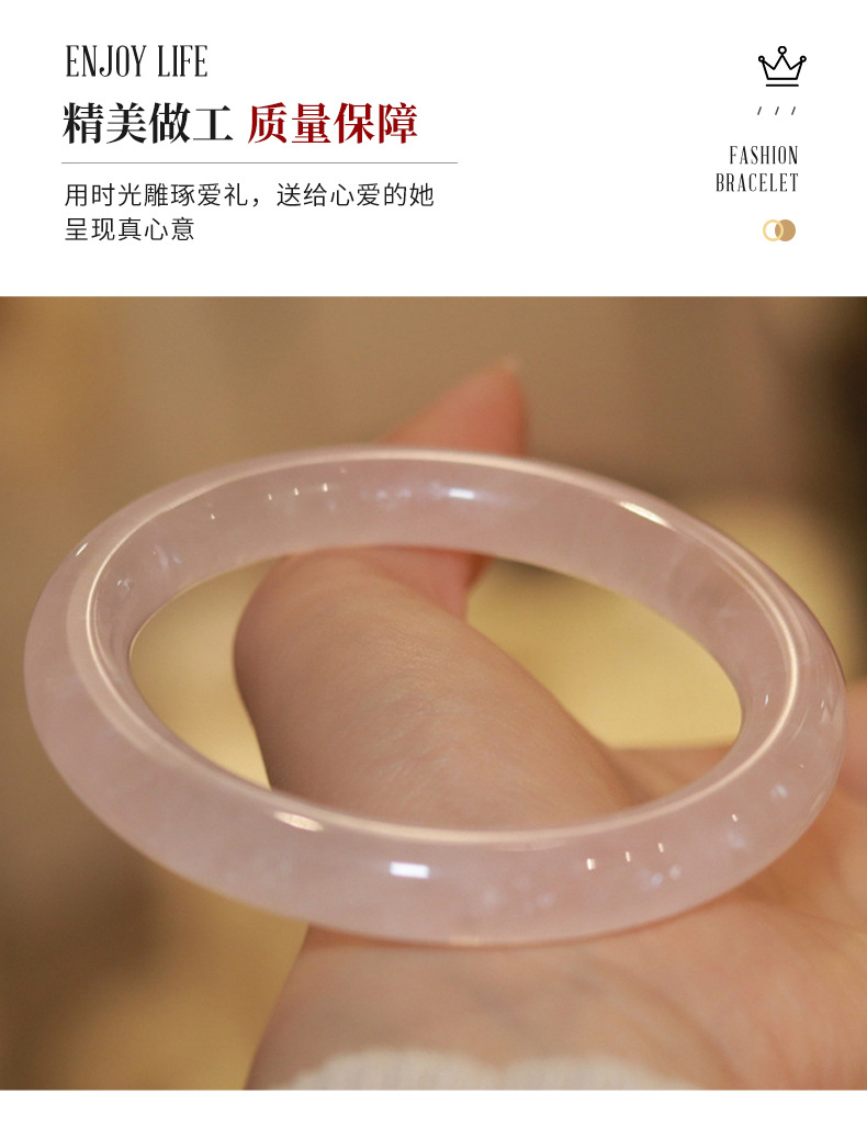 2023新款玉手镯自然冰种粉水晶手镯粉色少女心透粉玉石水晶手镯