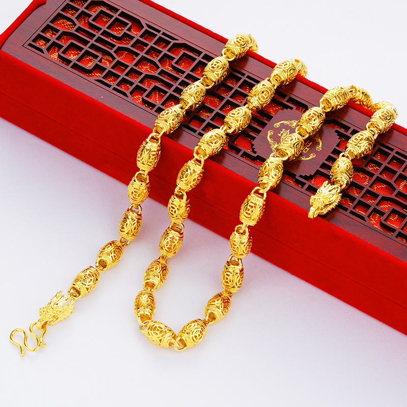 男镀金项链黄铜镀金饰品沙金24K镂空龙头项链女源头厂家货源批发