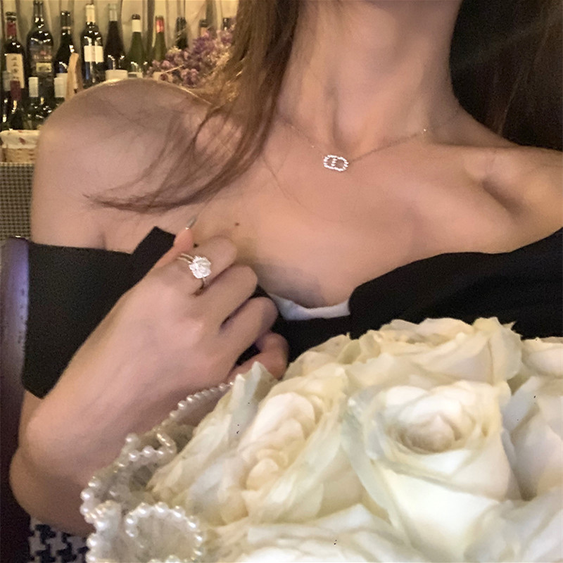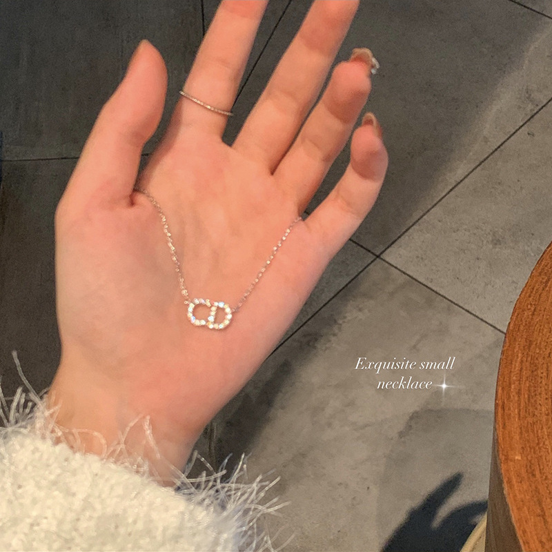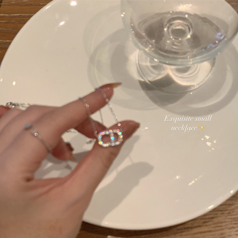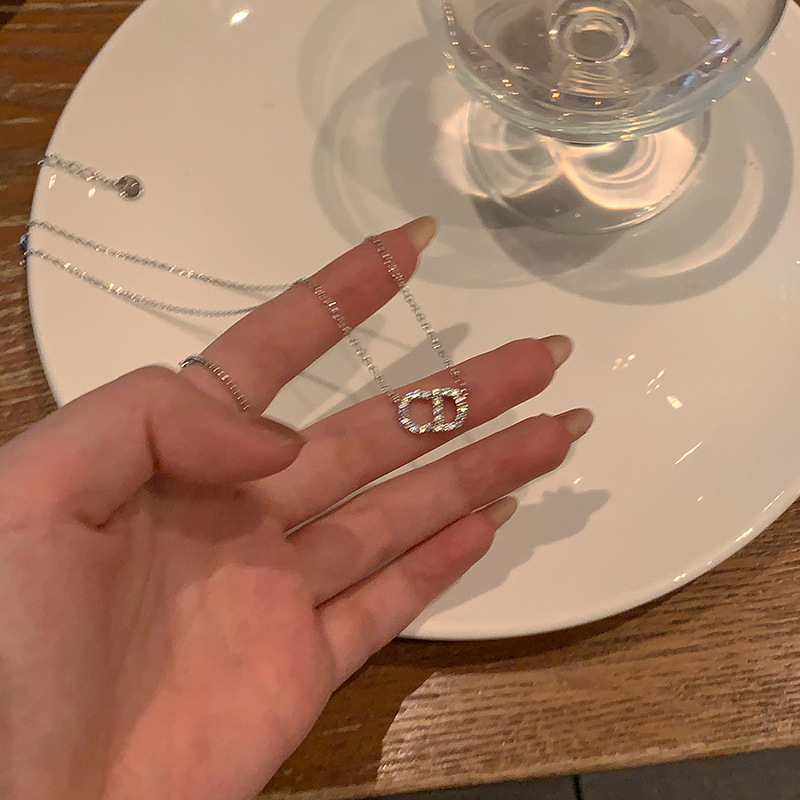 韩版时尚简约清冷气质简约银色CD字母项链女轻奢小众高级感锁骨链