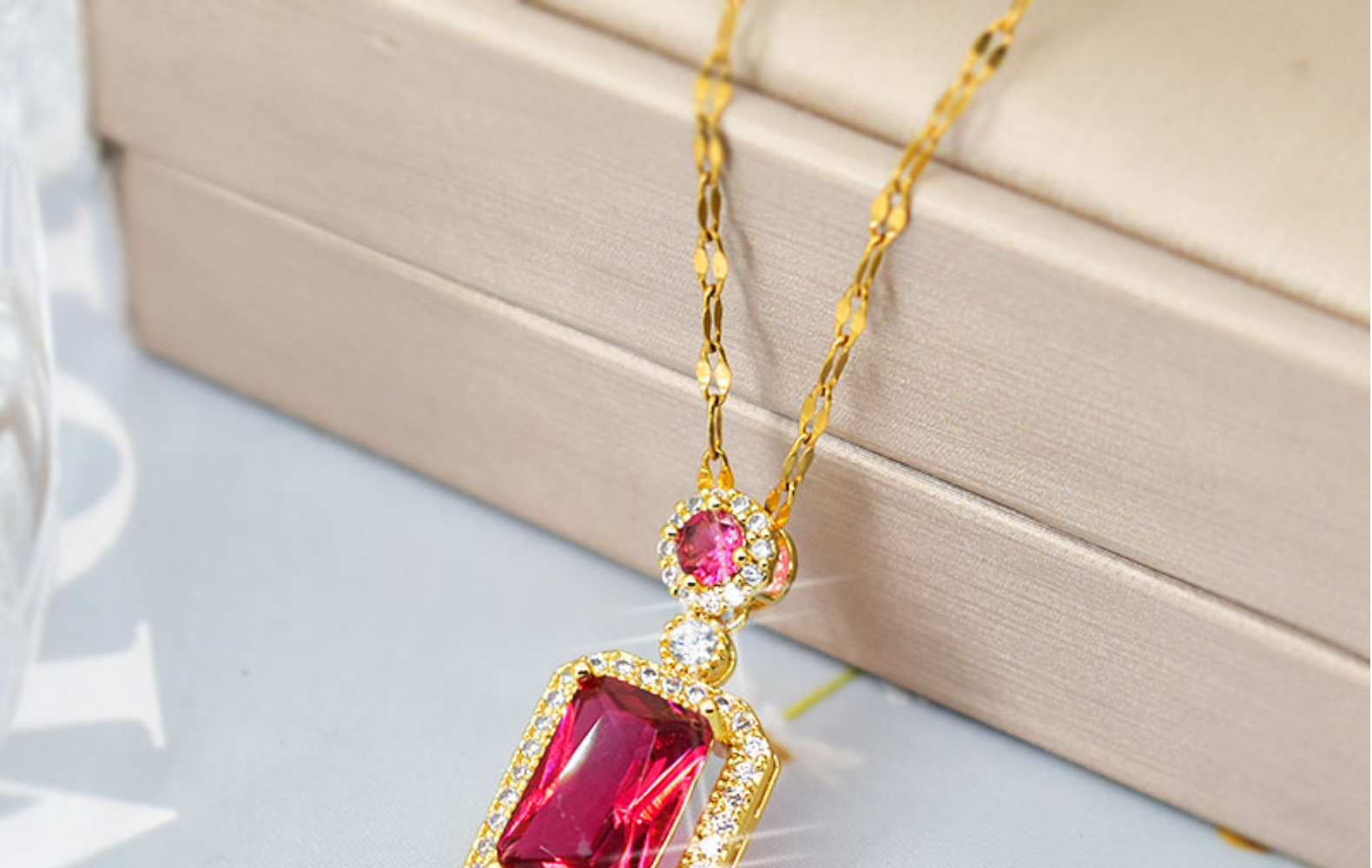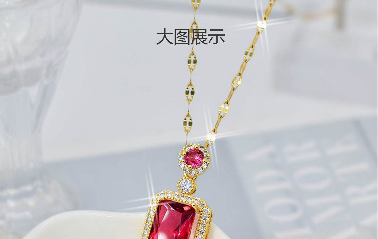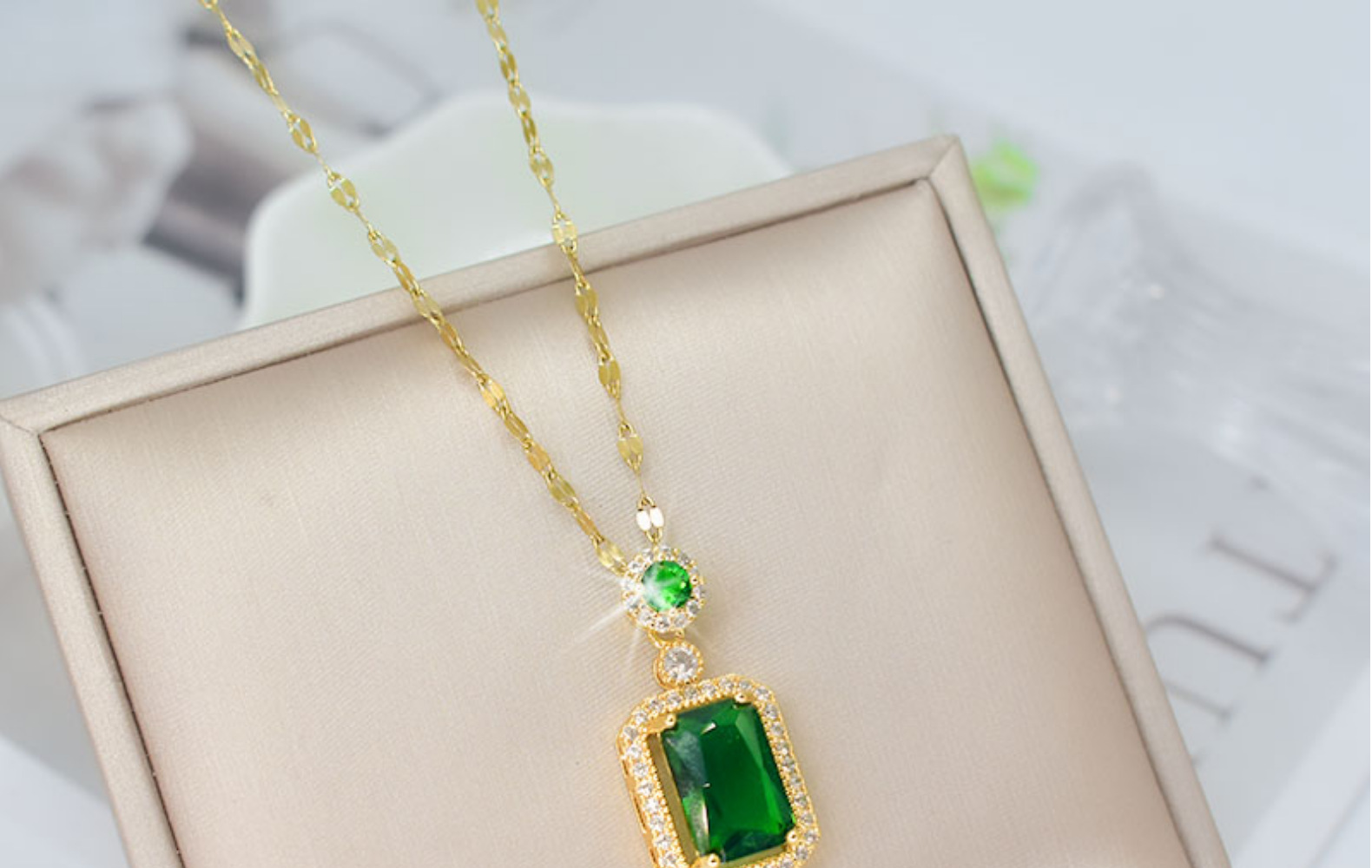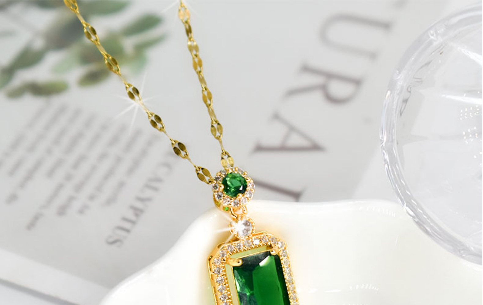 跨境时尚复古祖母绿宝石项链女气质单品ins风微镶项饰女式厂家直