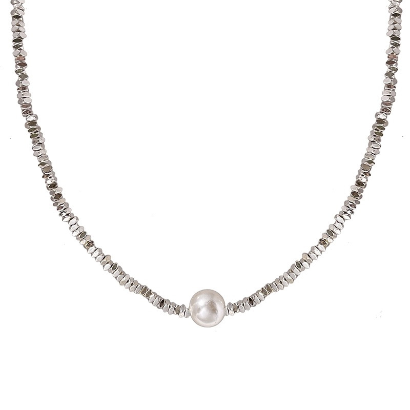 不规则碎银子珍珠吊坠项链女高级设计感锁骨链简约轻奢气质脖颈链
