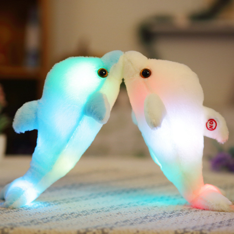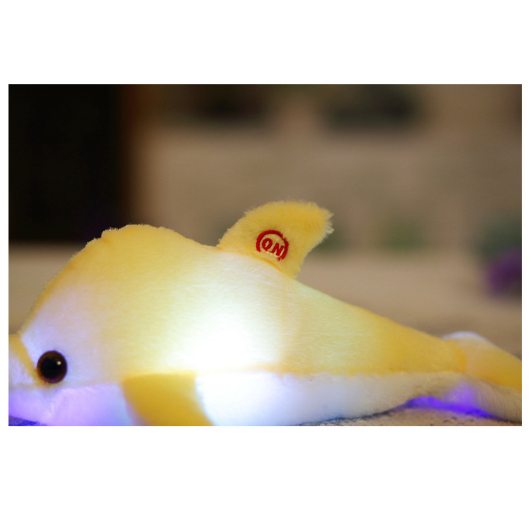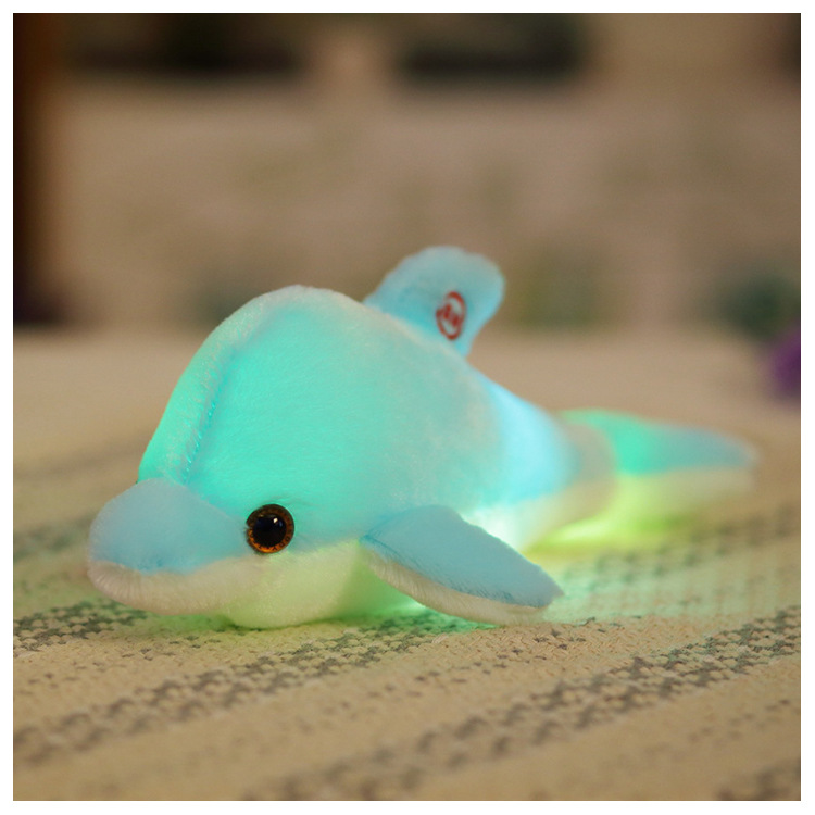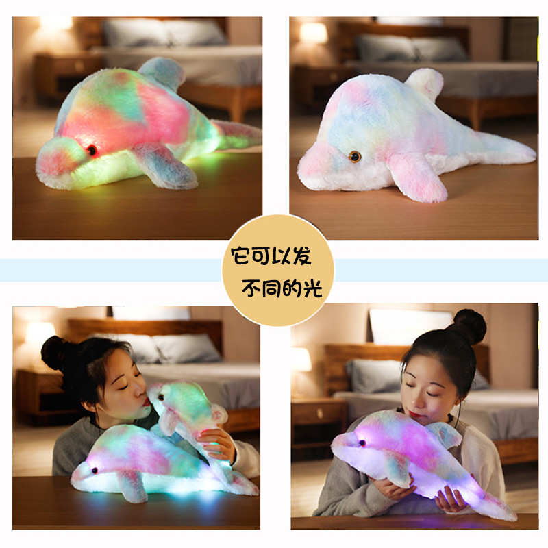 可爱毛绒发光海豚公仔七彩鱼儿玩具抓机娃娃玩偶摆件装饰一件代发