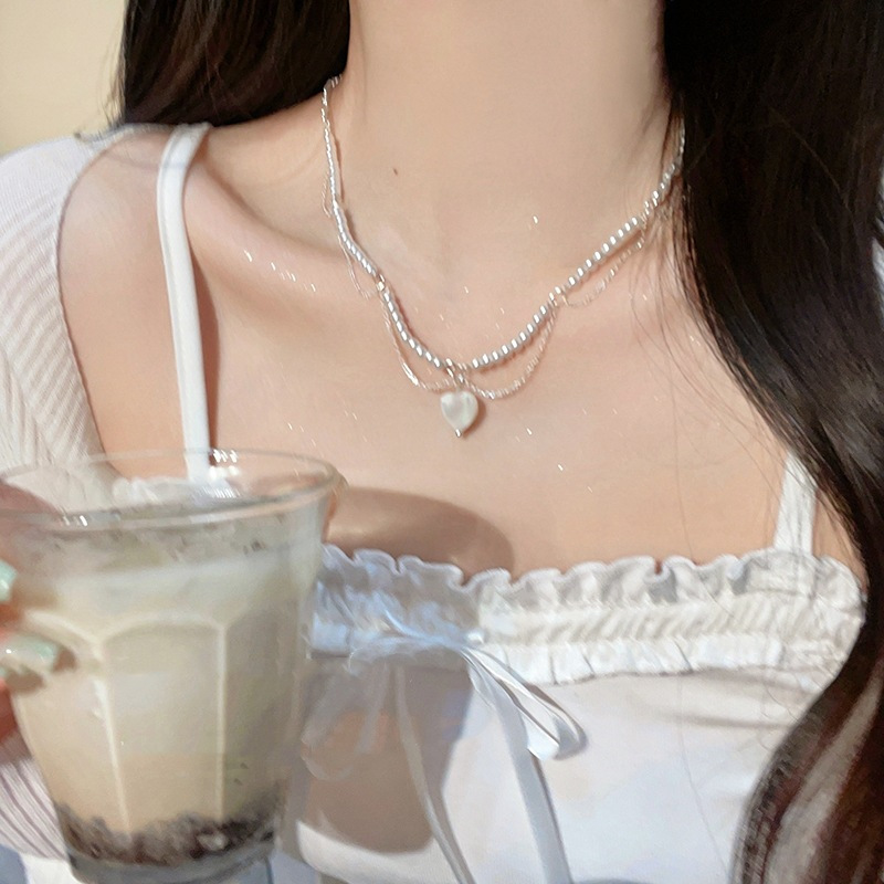串珠项链饰品女百搭不掉色小众高级感爱心珍珠锁骨链配饰新品批发