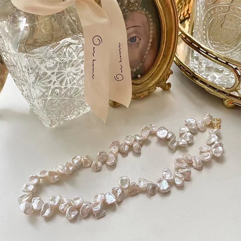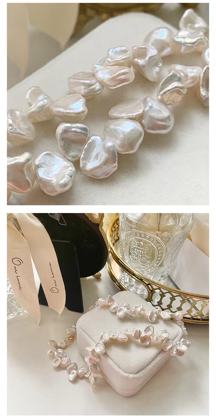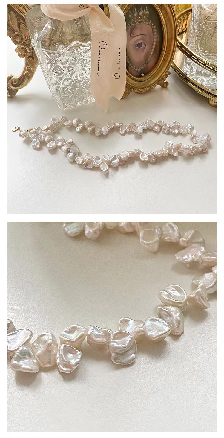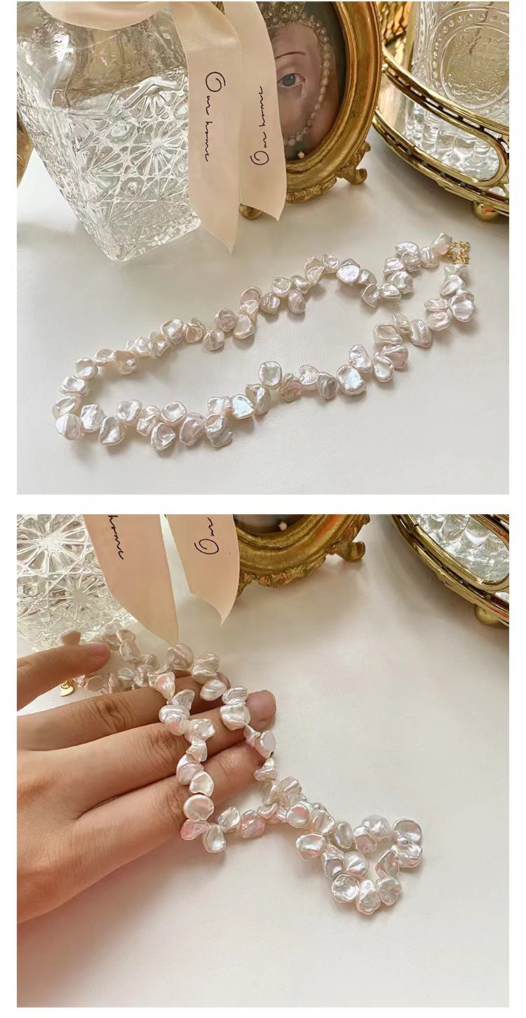 天然巴洛克异形花瓣珍珠项链法式复古锁骨链女14k包金高级感颈链