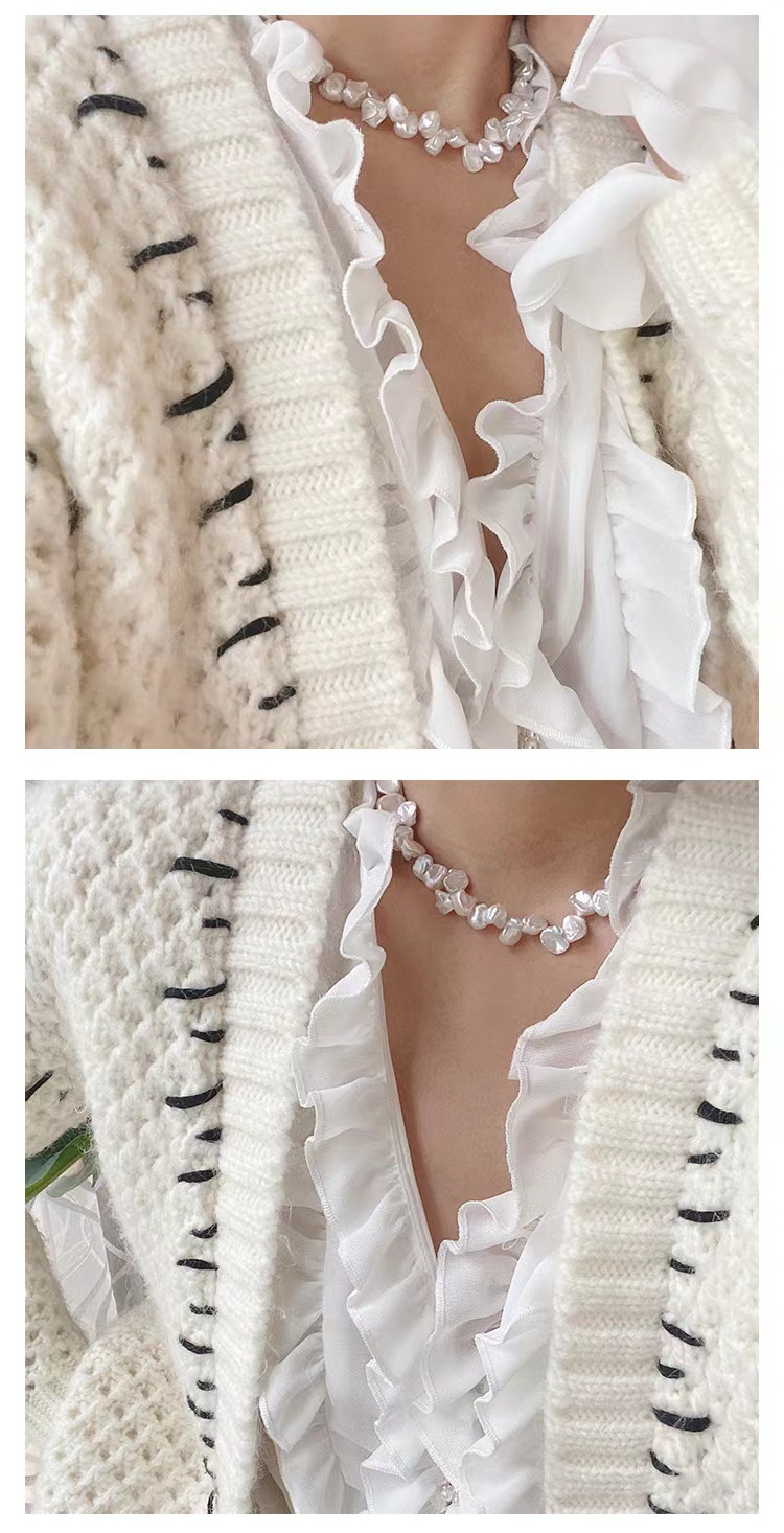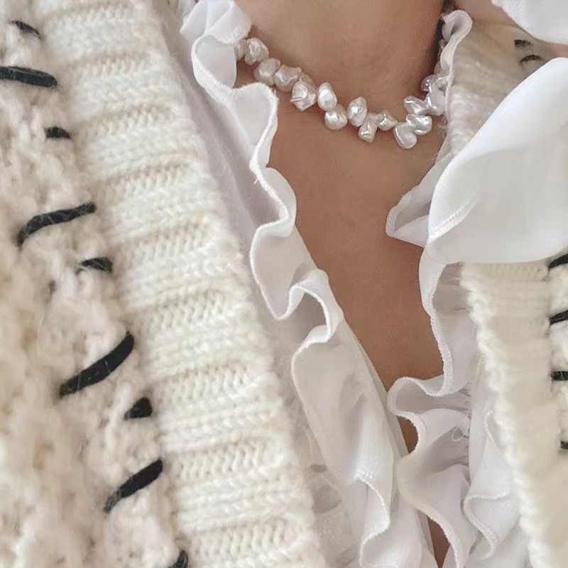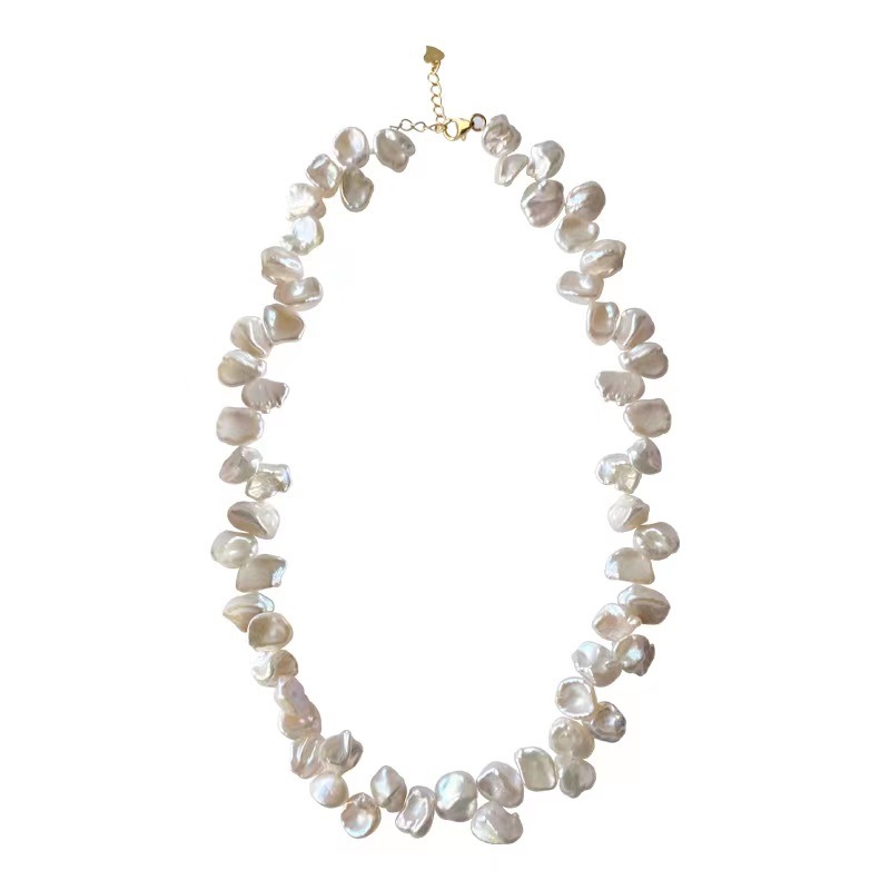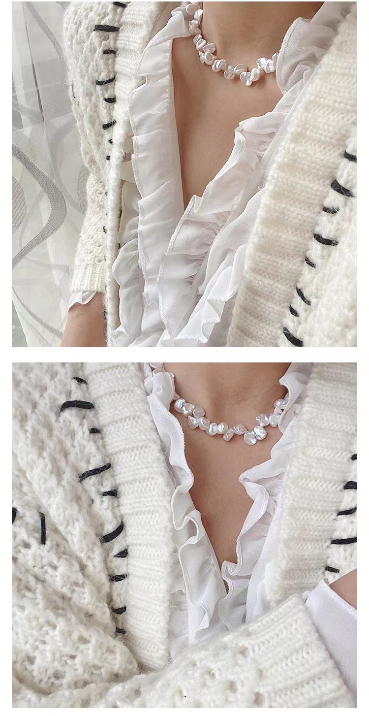 天然巴洛克异形花瓣珍珠项链法式复古锁骨链女14k包金高级感颈链