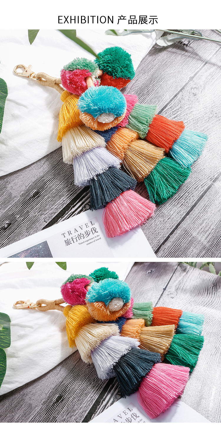 波西米亚流苏针织挂件DIY手工编织挂坠民族风包包挂饰钥匙扣吊坠