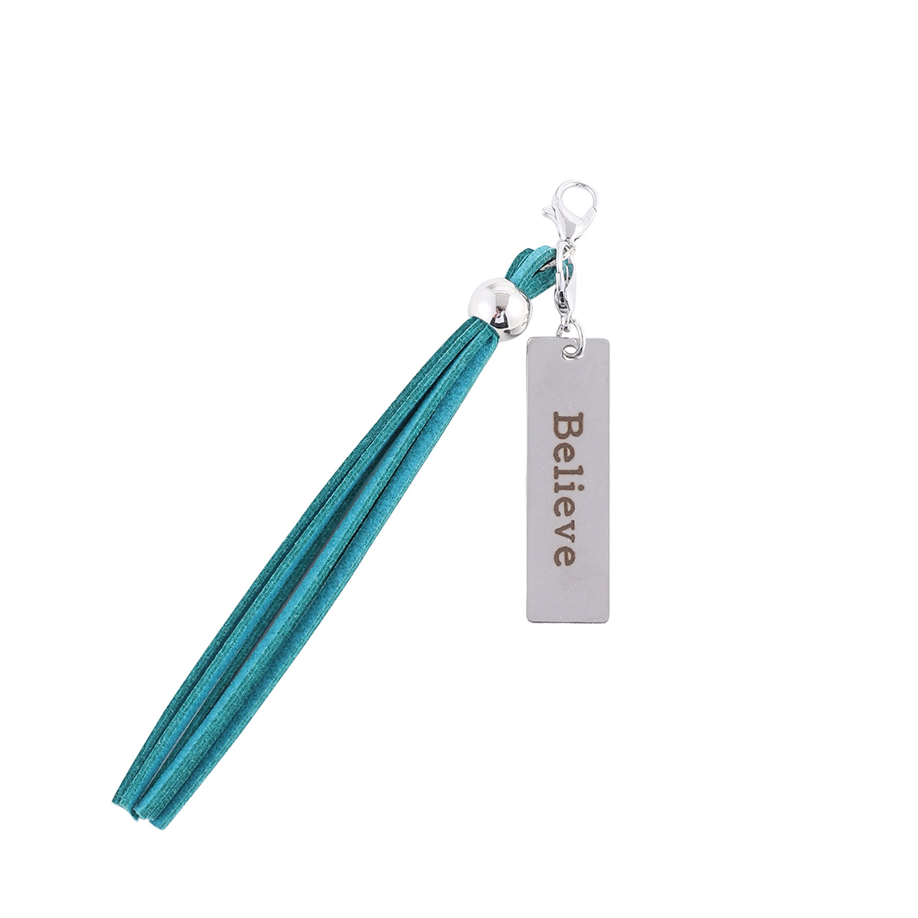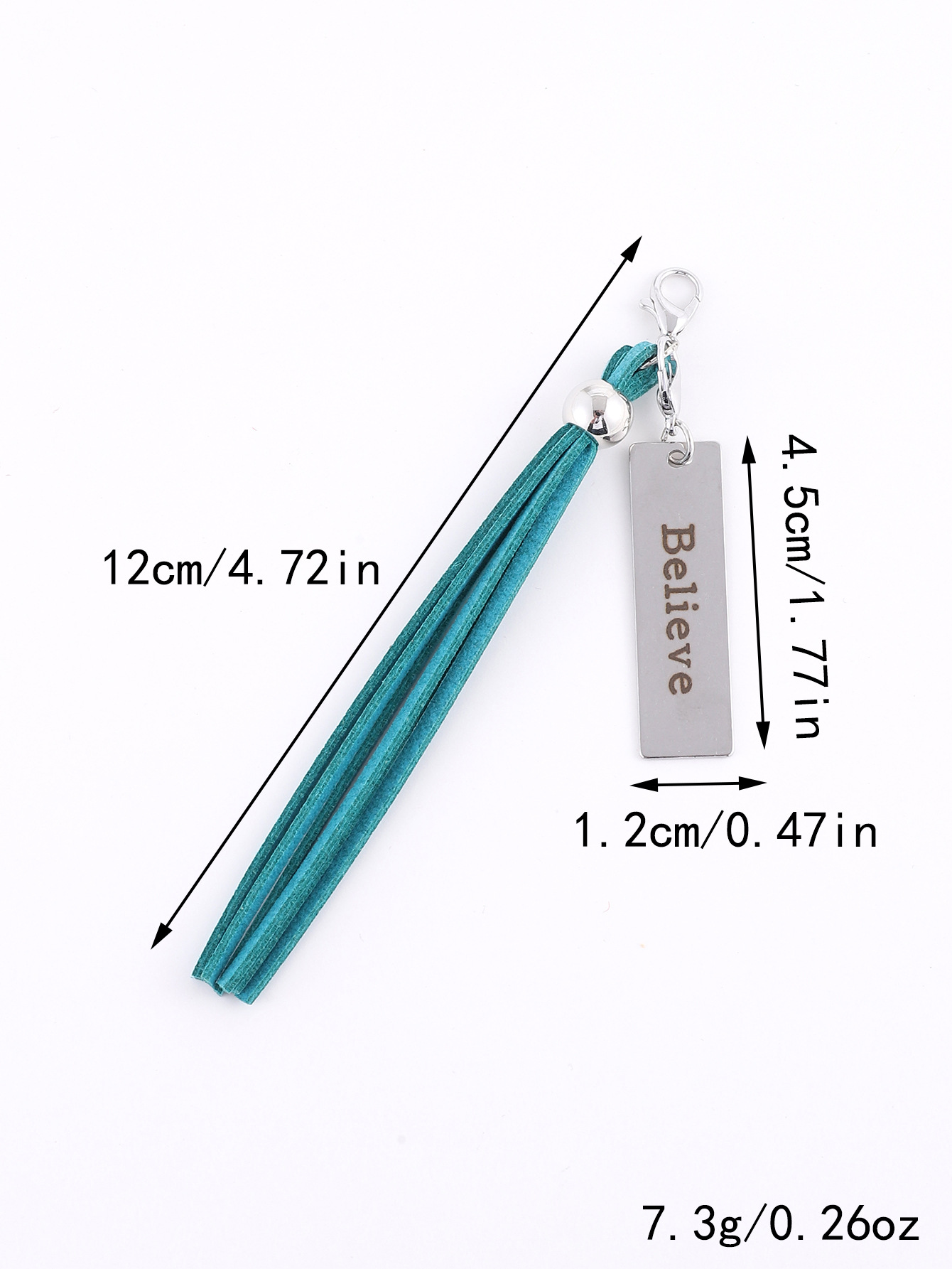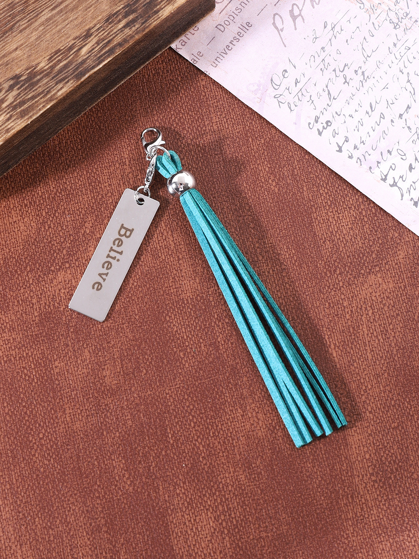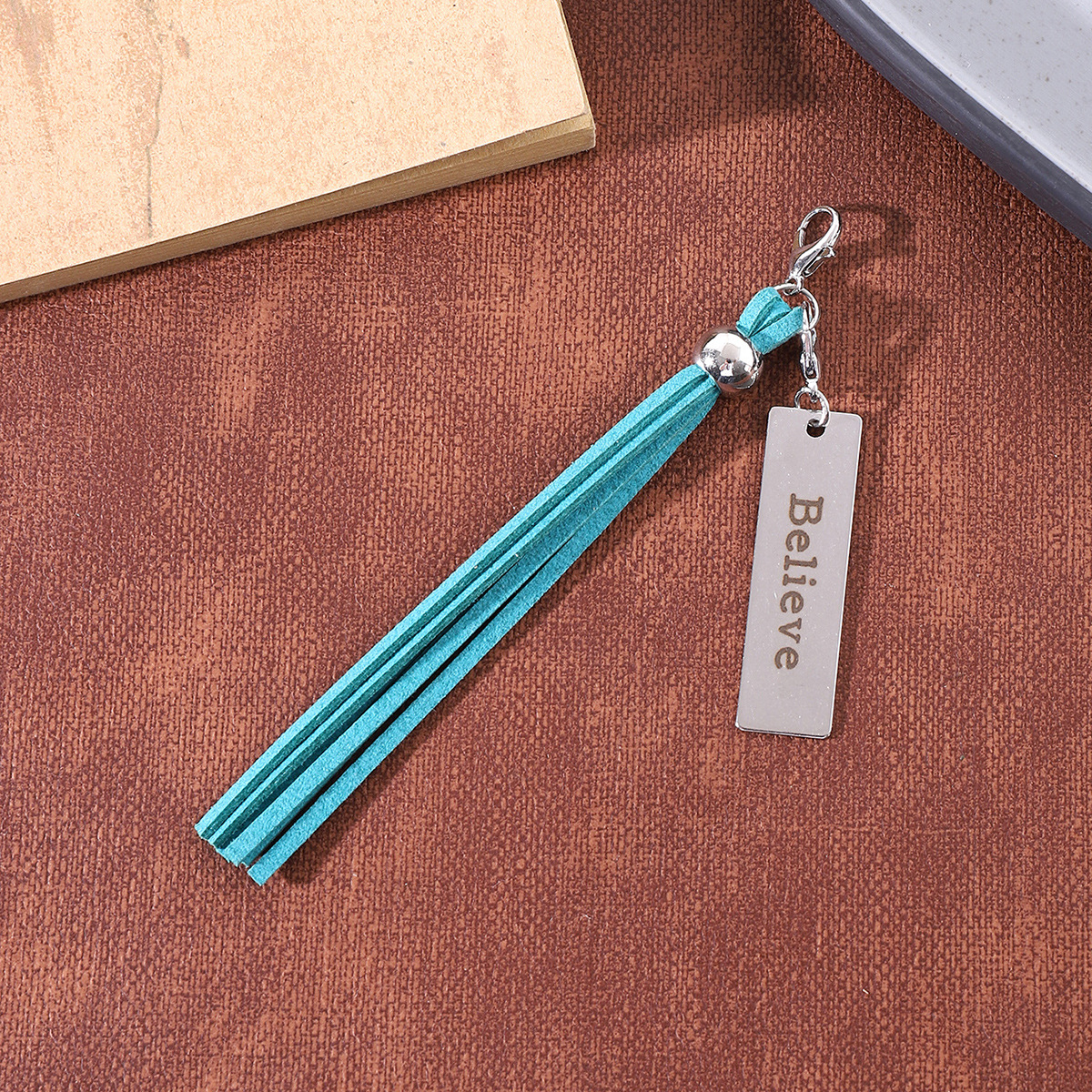 新款蓝色韩国绒流苏钥匙扣挂件长款英文字母皮革配件跨境欧美亚马