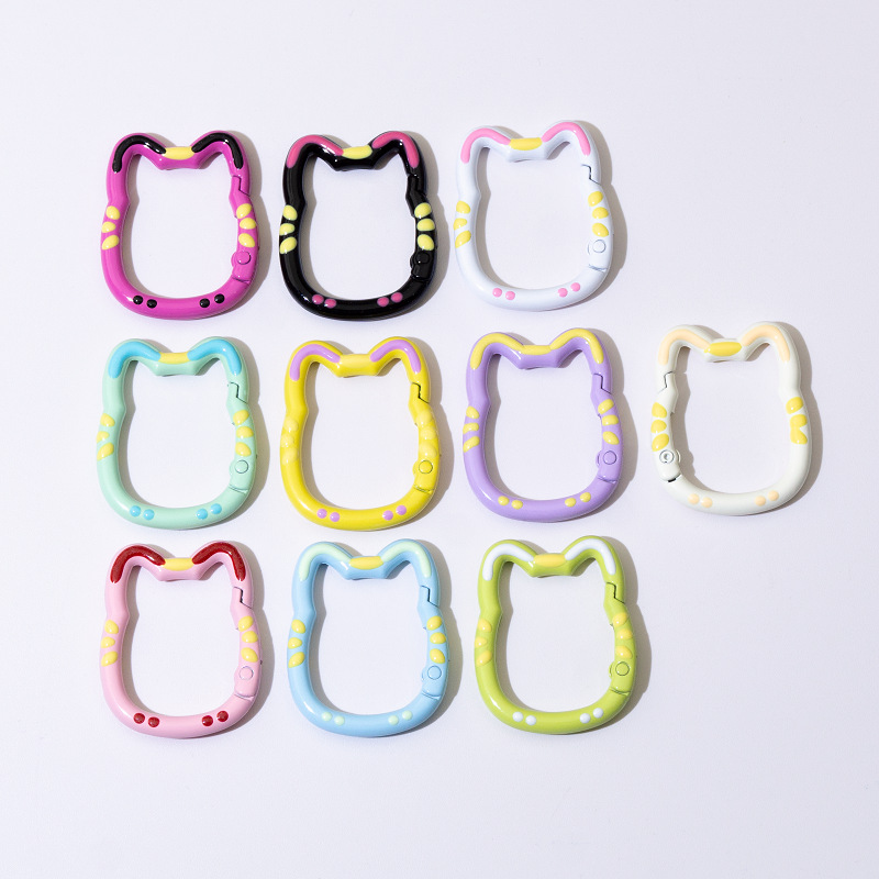 手绘彩色弹簧扣圆形开口环猫咪弹簧圈钥匙扣DIY配件合金连接环