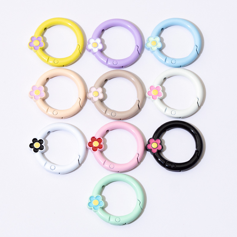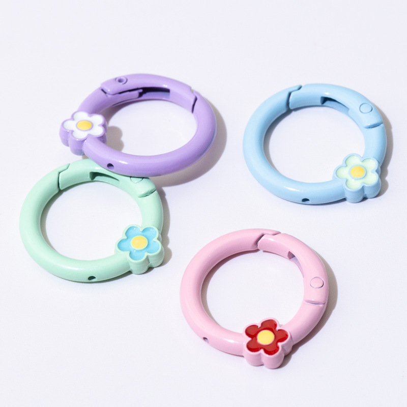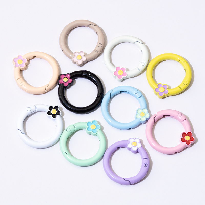 烤漆彩弹簧扣圆形开口环花朵弹簧圈钥匙扣DIY配件合金连接环