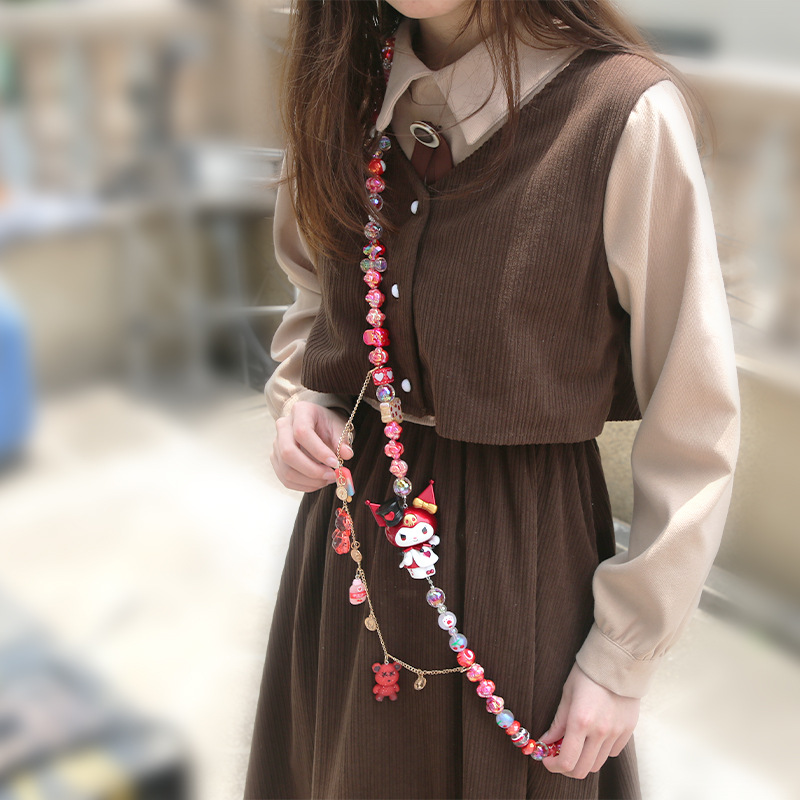 手机挂绳长款斜挎可背个性挂件串珠挂饰通用时尚高端ins网红挂链