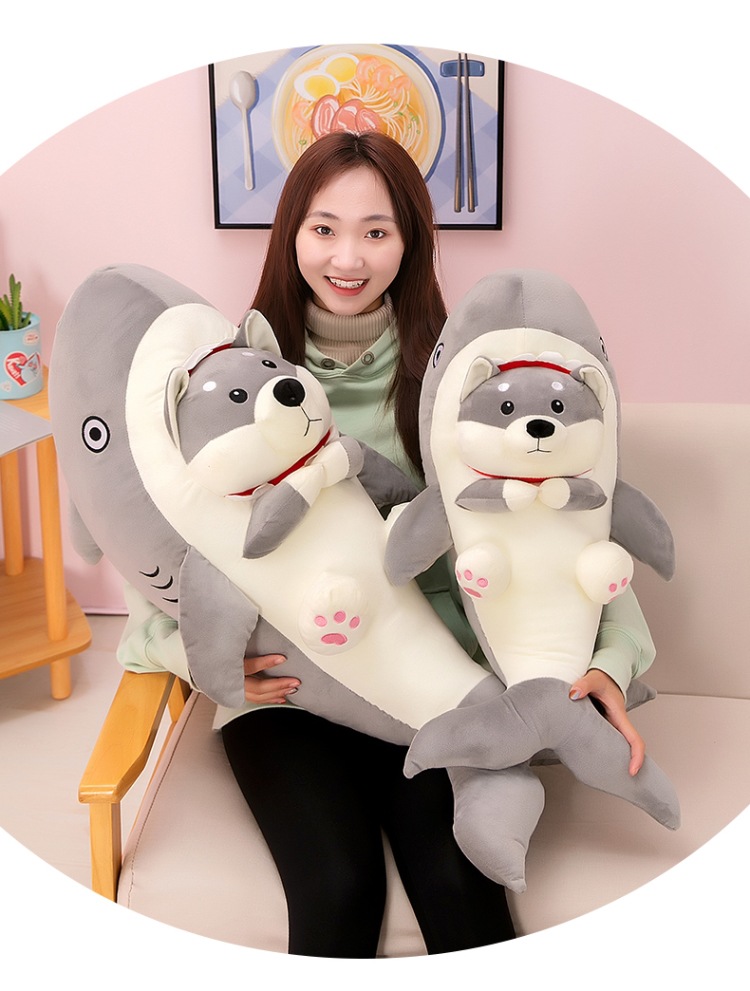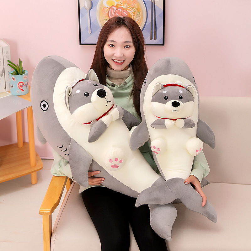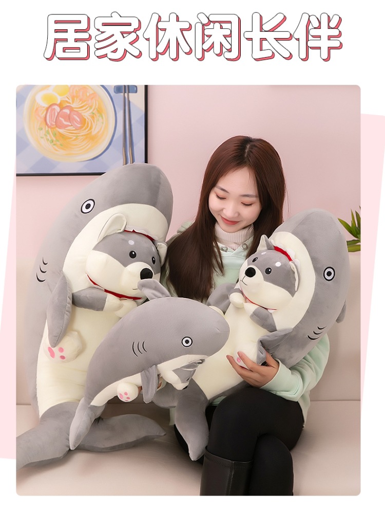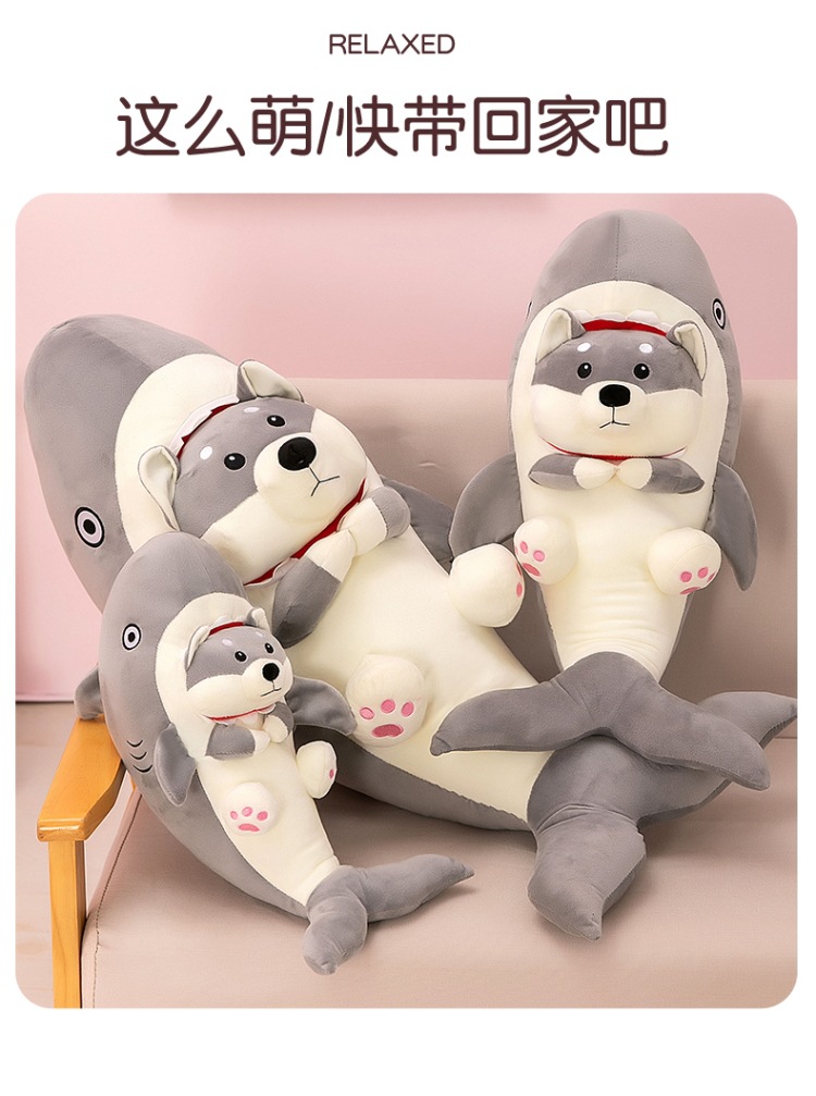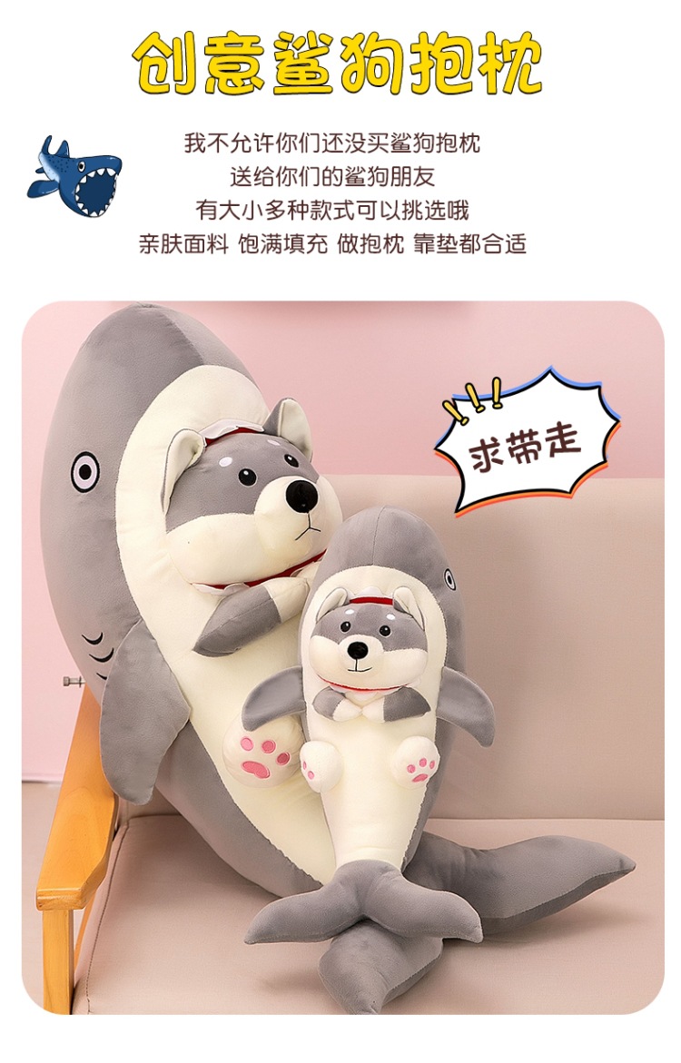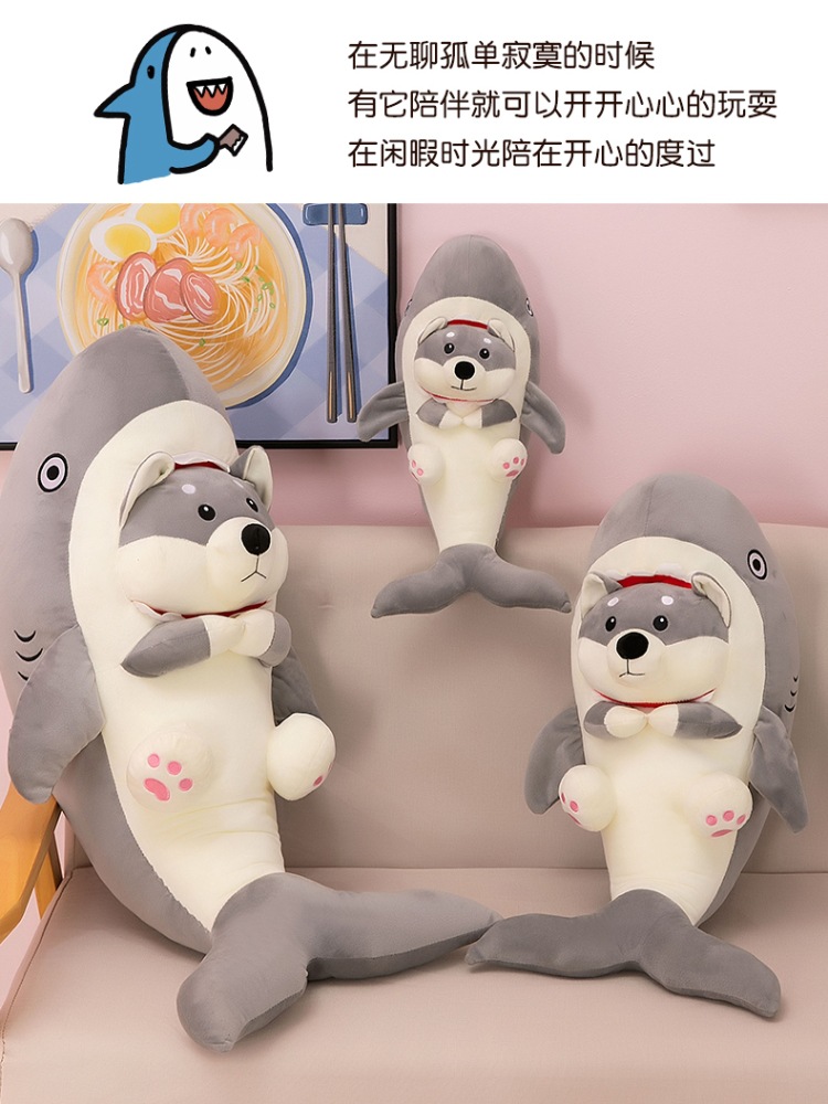 跨境搞怪鲨鱼狗毛绒玩具公仔批发大号恶搞鲨狗睡觉抱枕布娃娃玩偶