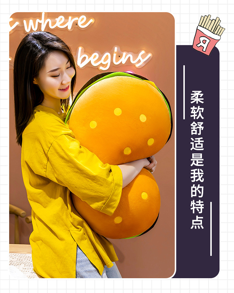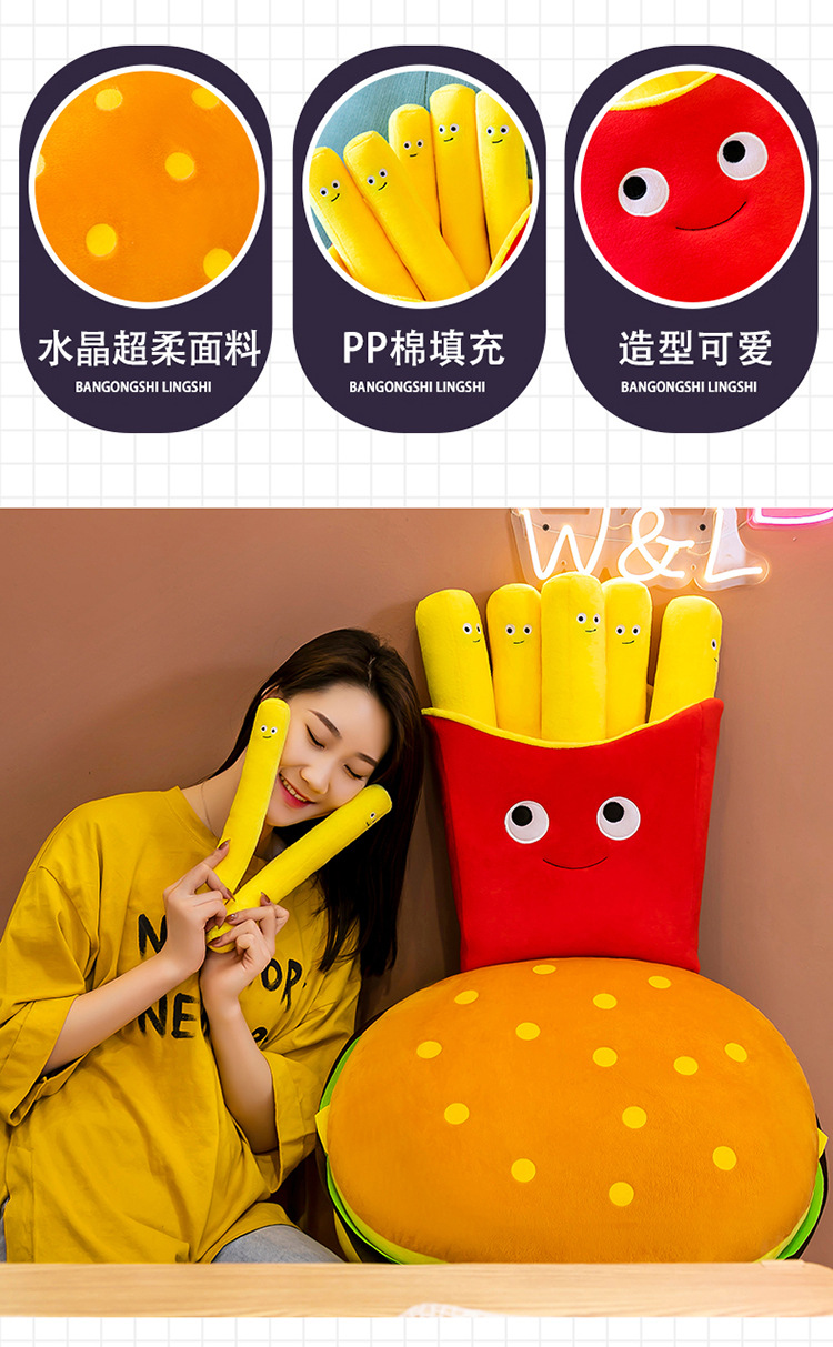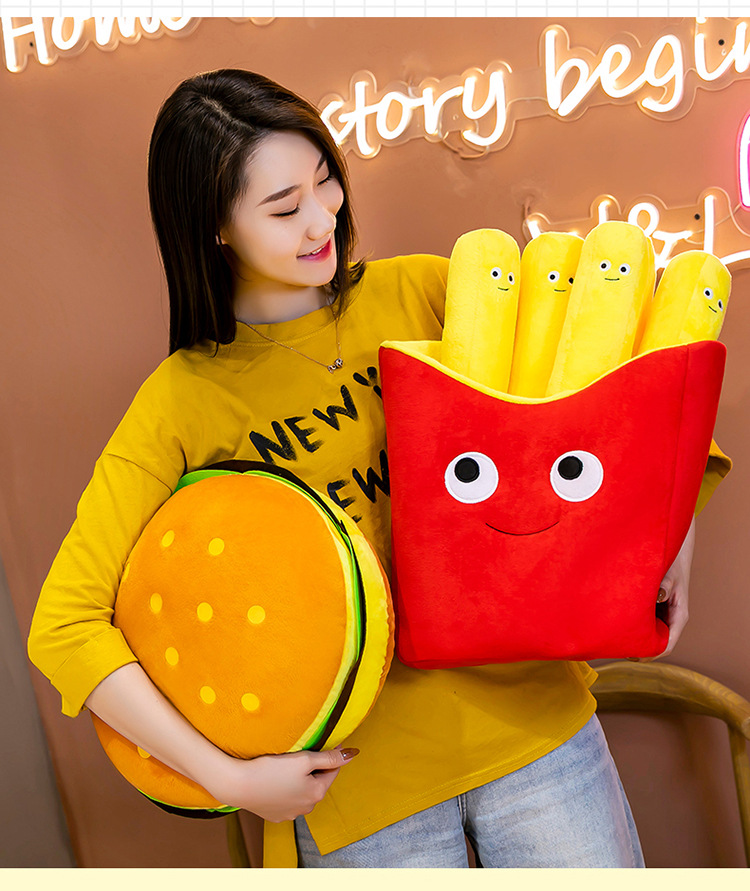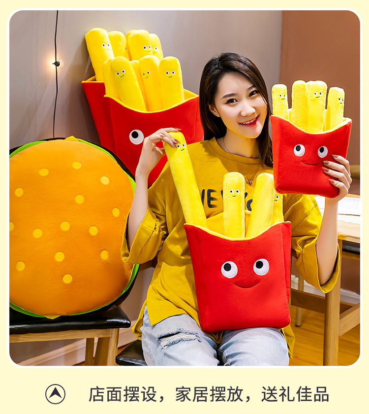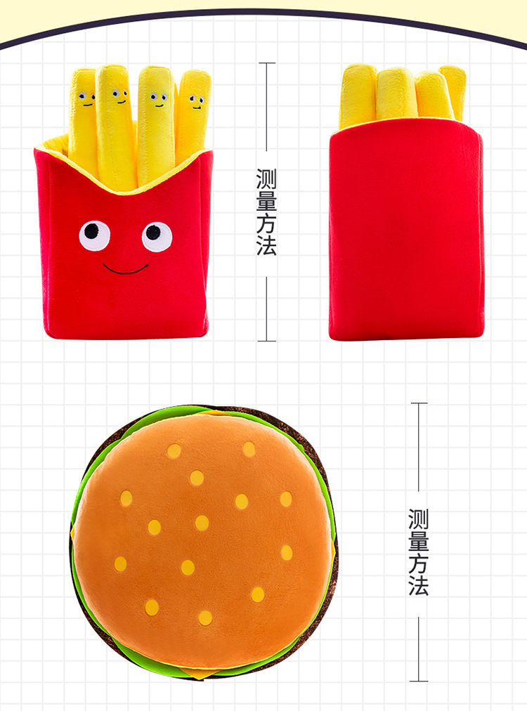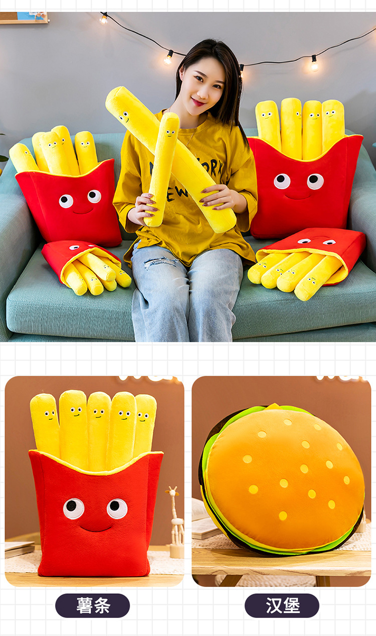 汉堡包薯条毛绒玩具抱枕女生睡觉零食包儿童玩偶跨境布娃娃批发