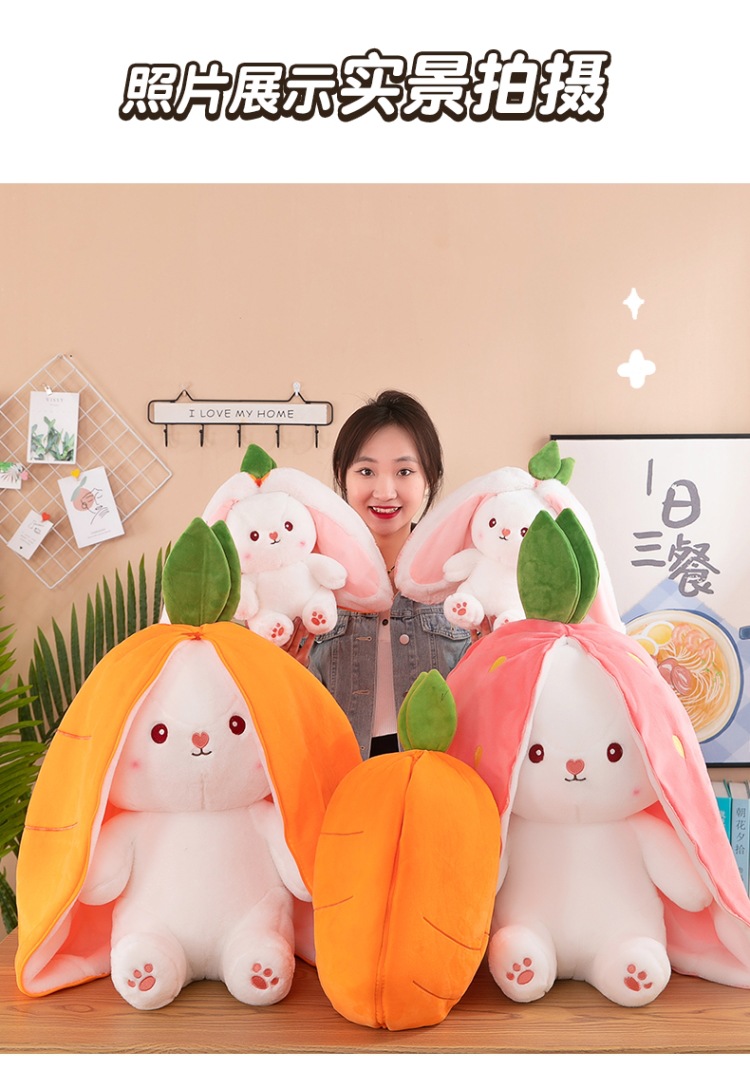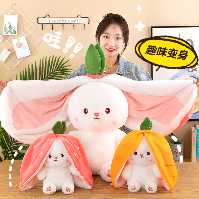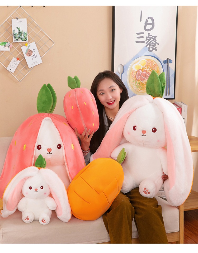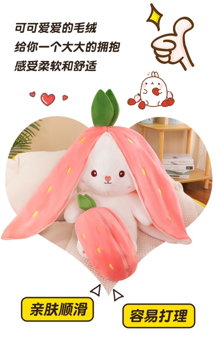 外贸可爱草莓兔子公仔抱枕萝卜兔儿童益智玩偶布娃娃毛绒玩具批发