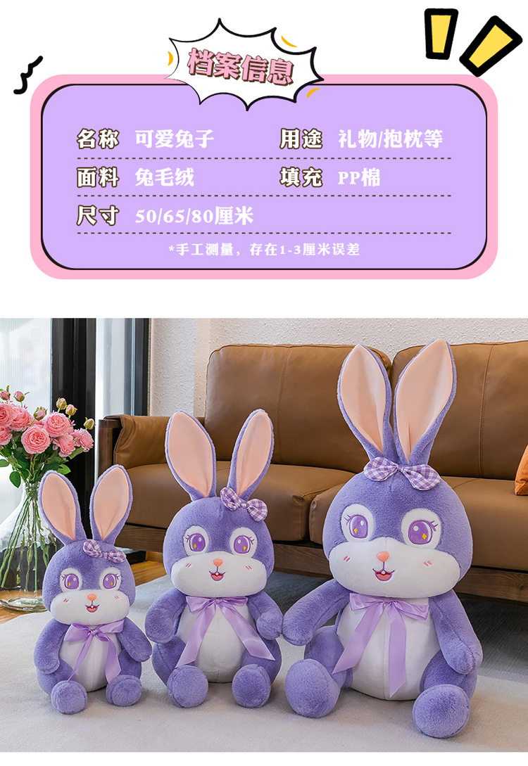 可爱网红紫色小兔子公仔女生布娃娃跨境毛绒玩具批发儿童陪睡玩偶