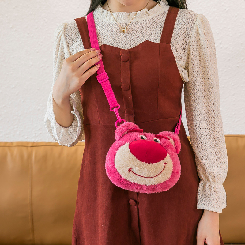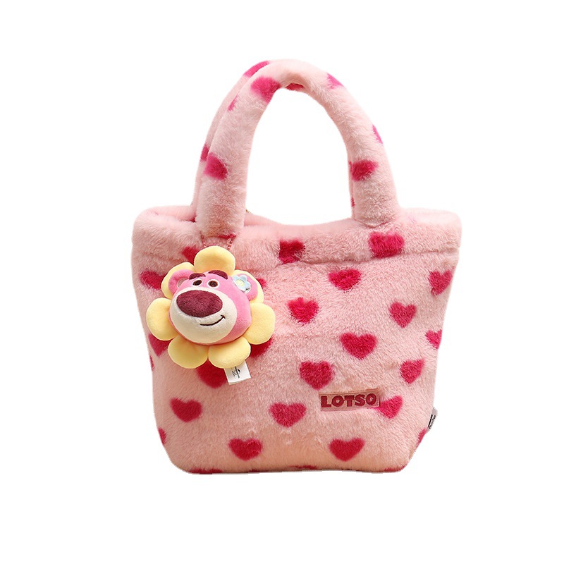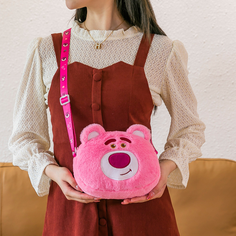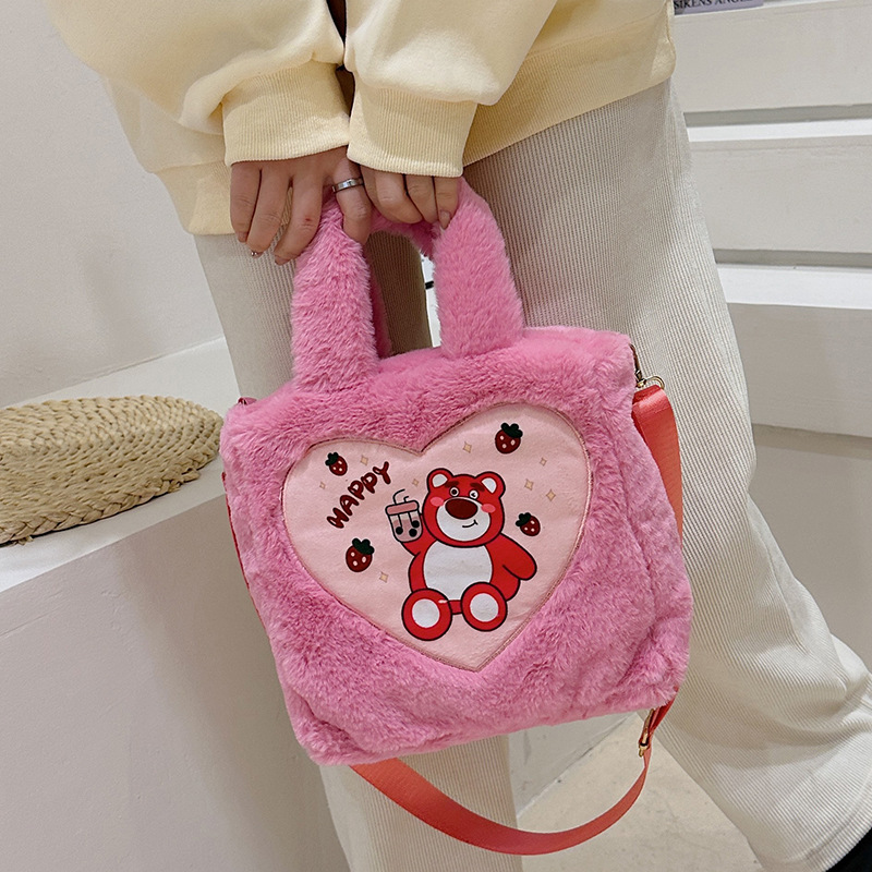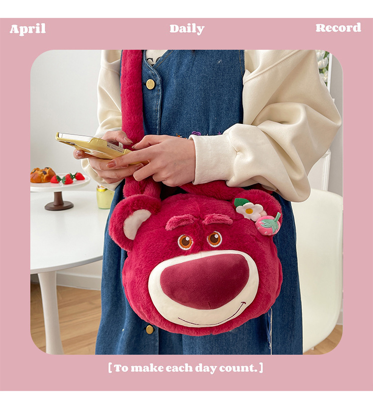 毛绒双面包包草莓熊单肩斜跨包卡通玩具包手提包腋下包批发娃娃机